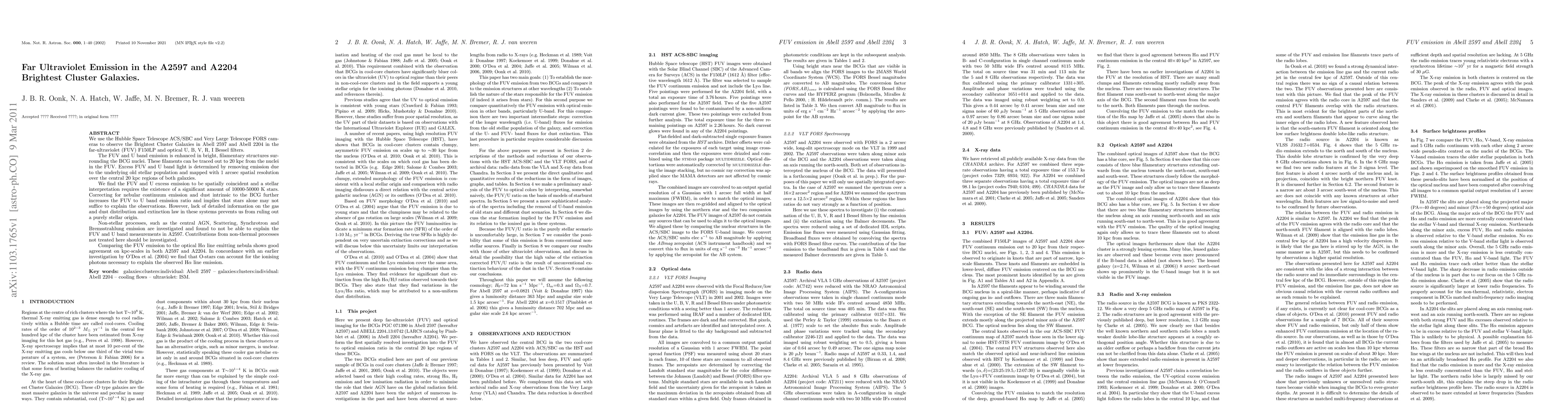 The study observes enhanced far-ultraviolet emission in bright cluster galaxies Abell 2597 and A2204, with excess light attributed to hot stars or other processes.