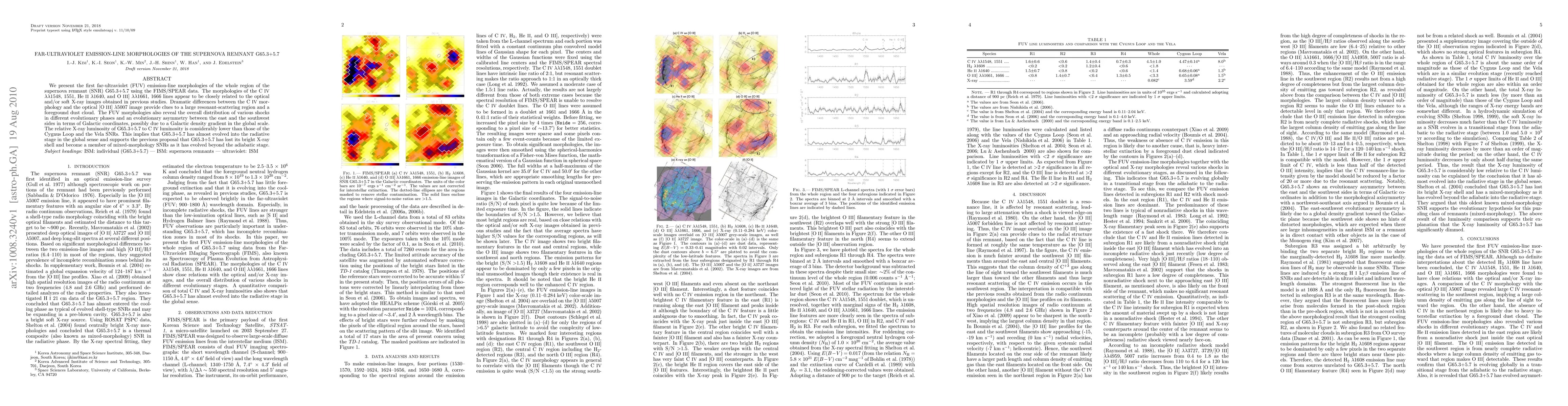 This paper presents far-ultraviolet emission-line morphologies of the supernova remnant G65.3+5.7, revealing significant differences in C IV and [O III] images that suggest a large resonant-scattering region and a foreground dust cloud. The study also indicates an evolutionary asymmetry and suggests G65.3+5.7 has transitioned to the radiative stage, differing from other mixed-morphology SNRs.