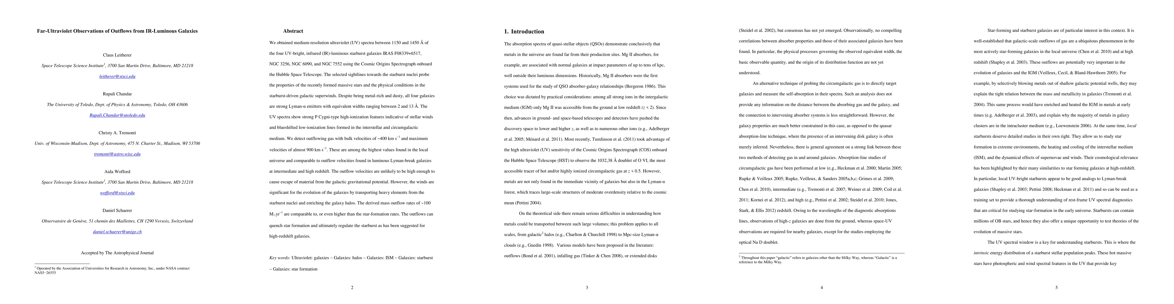 Four IR-luminous galaxies show strong outflows with bulk velocities of up to 900 km/s, transporting heavy elements from starburst nuclei and regulating star formation.