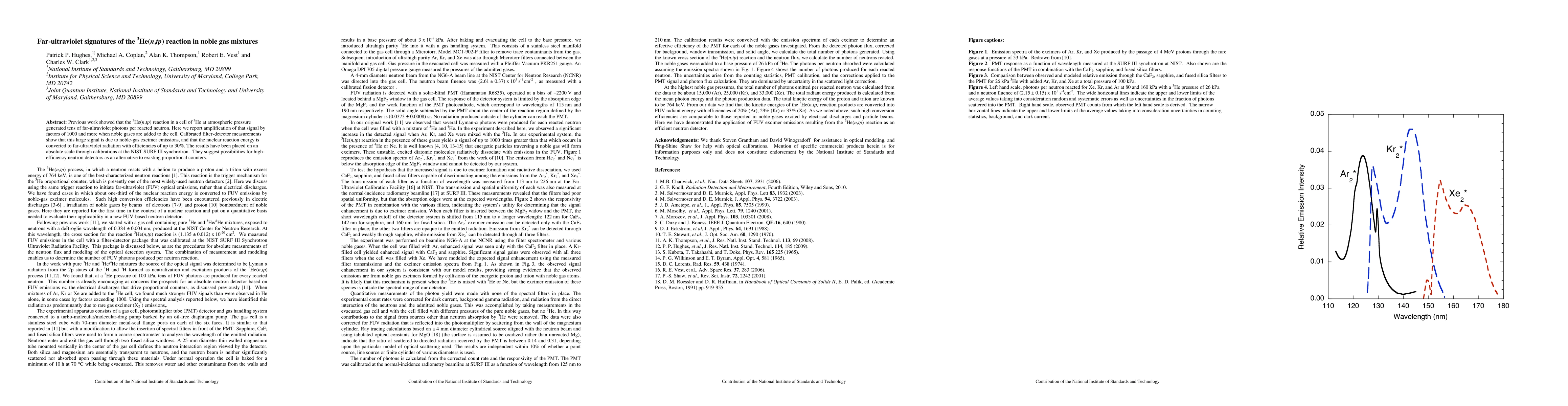 This research amplifies the far-ultraviolet signal from the 3He(n,tp) reaction by adding noble gases, achieving efficiencies up to 30% and suggesting potential for high-efficiency neutron detection. The signal enhancement is attributed to noble-gas excimer emissions, validated through calibrations at the NIST SURF III synchrotron.
