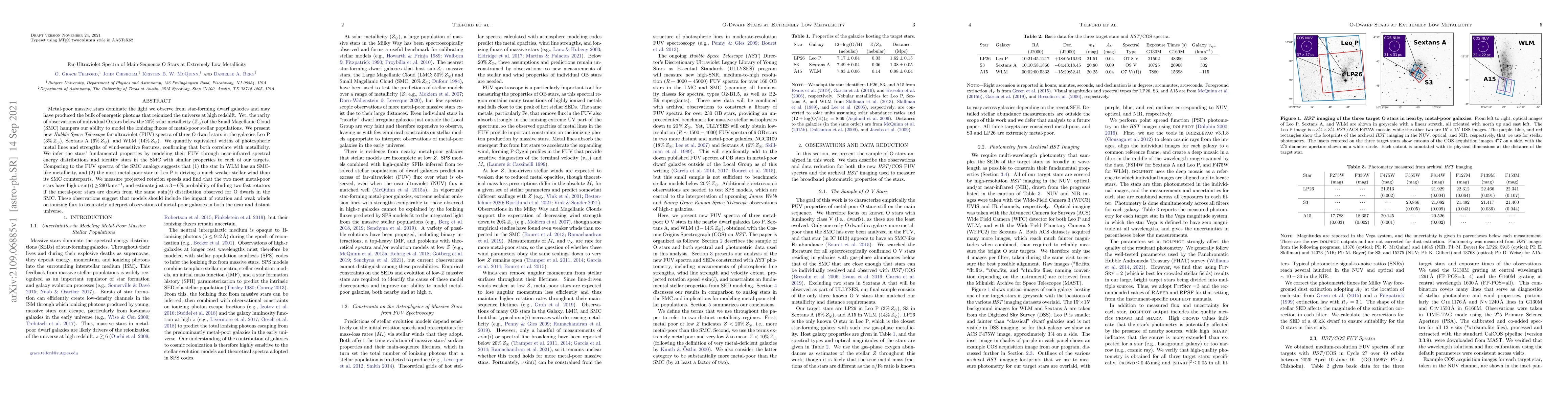 This paper presents new far-ultraviolet spectra of three low-metallicity O-type stars in distant galaxies, revealing correlations between metallicity and photospheric metal lines and wind-sensitive features. The findings suggest that models for metal-poor galaxies should incorporate the effects of rotation and weak stellar winds on ionizing flux.