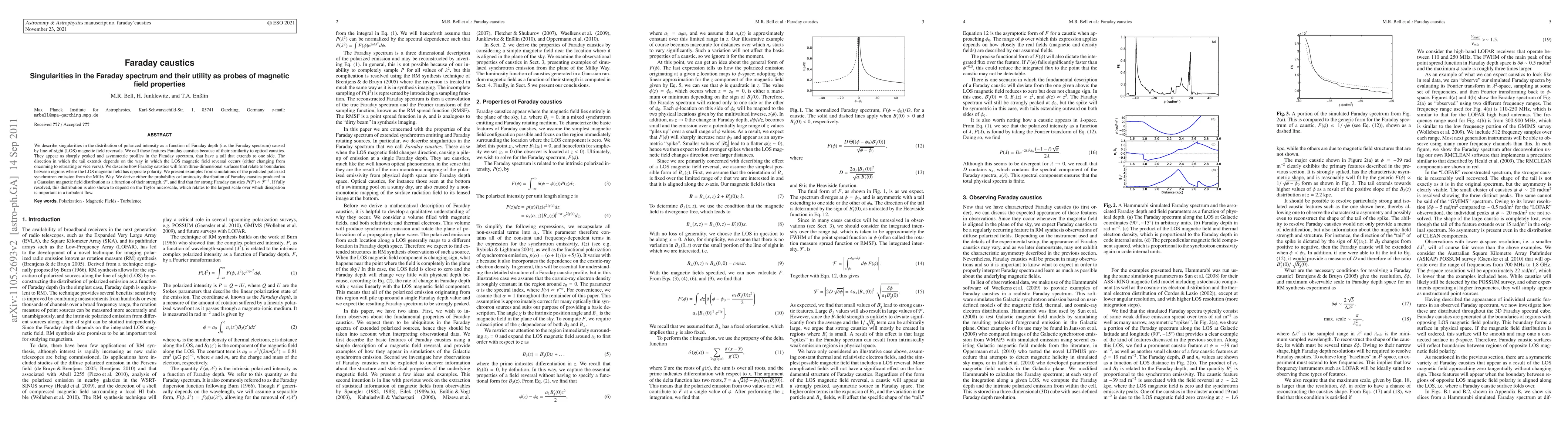 We describe singularities in the distribution of polarized intensity as a function of Faraday depth (i.e. the Faraday spectrum) caused by line-of-sight (LOS) magnetic field reversals. We call these features Faraday caustics because of their similarity to optical caustics. They appear as sharply peaked and asymmetric profiles in the Faraday spectrum, that have a tail that extends to one side. The direction in which the tail extends depends on the way in which the LOS magnetic field reversal occurs (either changing from oncoming to retreating or vice versa). We describe how Faraday caustics will form three-dimensional surfaces that relate to boundaries between regions where the LOS magnetic field has opposite polarity. We present examples from simulations of the predicted polarized synchrotron emission from the Milky Way. We derive either the probability or luminosity distribution of Faraday caustics produced in a Gaussian magnetic field distribution as a function of their strength, F, and find that for strong Faraday caustics P(F)\proptoF^{-3} . If fully resolved, this distribution is also shown to depend on the Taylor microscale, which relates to the largest scale over which dissipation is important in a turbulent flow.