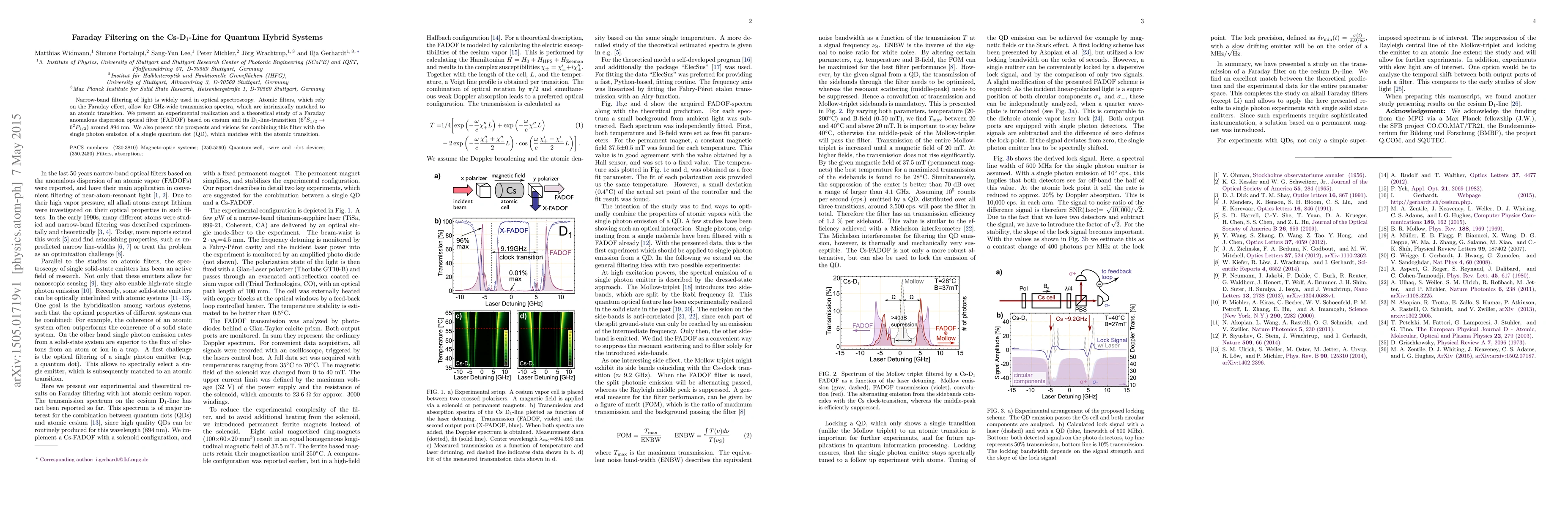 Narrow-band filtering of light is widely used in optical spectroscopy. Atomic filters, which rely on the Faraday effect, allow for GHz-wide transmission spectra, which are intrinsically matched to an atomic transition. We present an experimental realization and a theoretical study of a Faraday anomalous dispersion optical filter (FADOF) based on cesium and its D$_1$-line-transition ($6^2S_{1/2}\rightarrow6^2P_{1/2}$) around 894nm. We also present the prospects and visions for combining this filter with the single photon emission of a single quantum dot (QD), which matches with the atomic transition.
