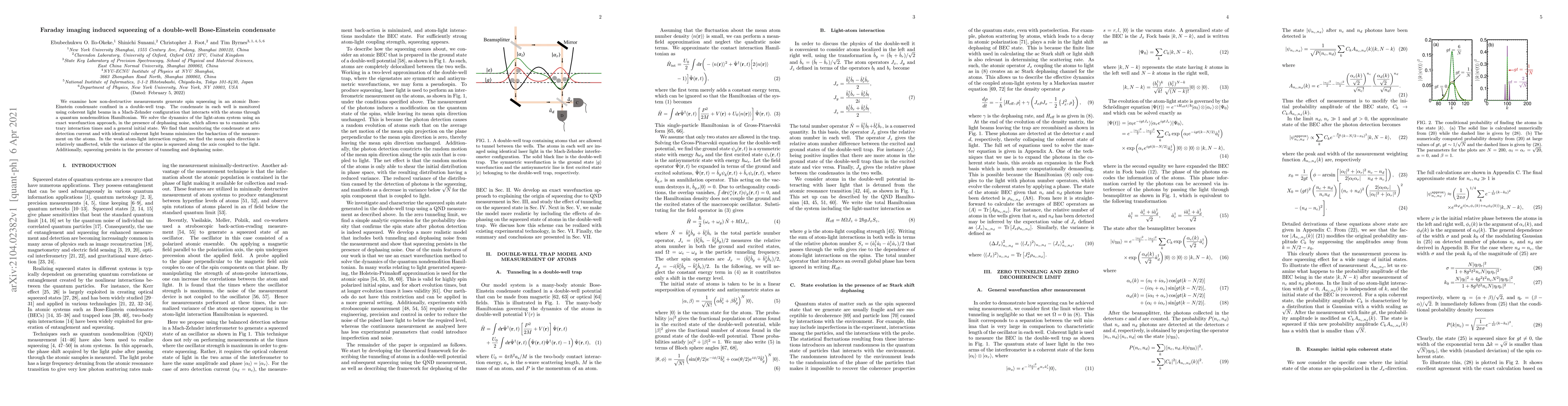 We examine how non-destructive measurements generate spin squeezing in an atomic Bose-Einstein condensate confined in a double-well trap. The condensate in each well is monitored using coherent light beams in a Mach-Zehnder configuration that interacts with the atoms through a quantum nondemolition Hamiltonian. We solve the dynamics of the light-atom system using an exact wavefunction approach, in the presence of dephasing noise, which allows us to examine arbitrary interaction times and a general initial state. We find that monitoring the condensate at zero detection current and with identical coherent light beams minimizes the backaction of the measurement on the atoms. In the weak atom-light interaction regime, we find the mean spin direction is relatively unaffected, while the variance of the spins is squeezed along the axis coupled to the light. Additionally, squeezing persists in the presence of tunneling and dephasing noise.