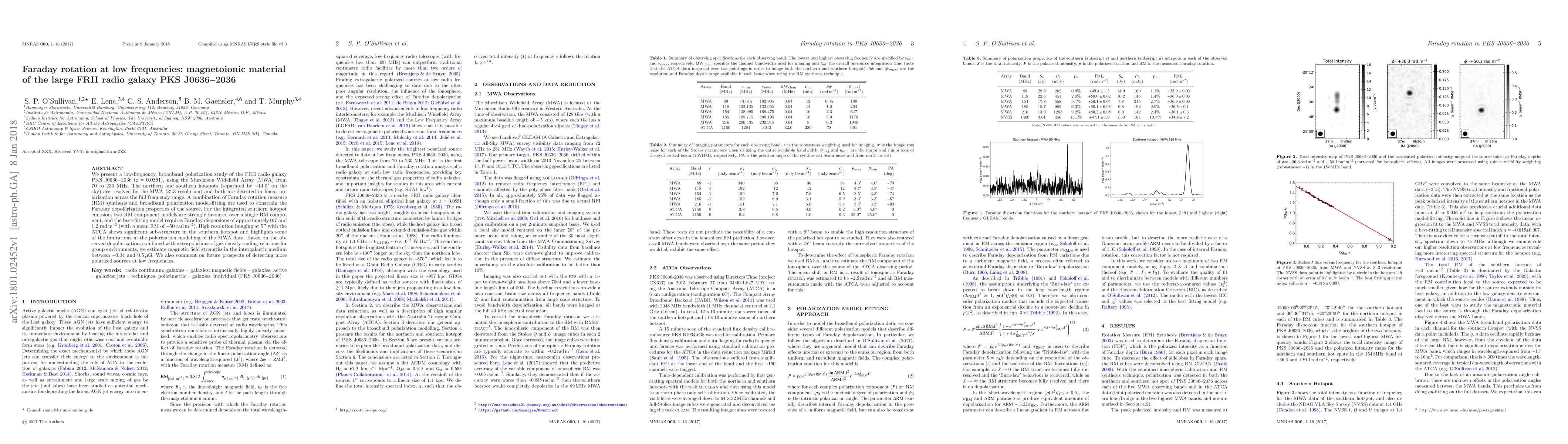 We present a low-frequency, broadband polarization study of the FRII radio galaxy PKS J0636-2036 (z = 0.0551), using the Murchison Widefield Array (MWA) from 70 to 230 MHz. The northern and southern hotspots (separated by ~14.5' on the sky) are resolved by the MWA (3'.3 resolution) and both are detected in linear polarization across the full frequency range. A combination of Faraday rotation measure (RM) synthesis and broadband polarization model-fitting are used to constrain the Faraday depolarization properties of the source. For the integrated southern hotspot emission, two RM component models are strongly favoured over a single RM component, and the best-fitting model requires Faraday dispersions of approximately 0.7 and 1.2 rad/m$^2$ (with a mean RM of ~50 rad/m$^2$). High resolution imaging at 5" with the ATCA shows significant sub-structure in the southern hotspot and highlights some of the limitations in the polarization modelling of the MWA data. Based on the observed depolarization, combined with extrapolations of gas density scaling-relations for group environments, we estimate magnetic field strengths in the intergalactic medium between ~0.04 and 0.5 {\mu}G. We also comment on future prospects of detecting more polarized sources at low frequencies.