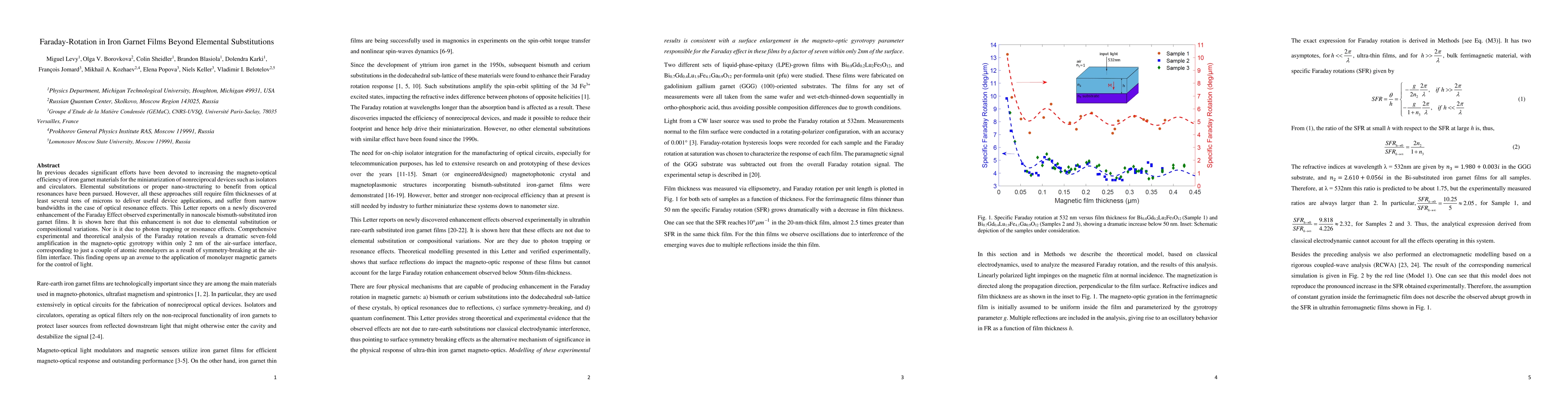 This paper reports a significant seven-fold enhancement of the Faraday Effect in nanoscale bismuth-substituted iron garnet films, attributed to symmetry-breaking at the air-film interface rather than elemental substitutions or resonance effects. This discovery suggests potential for using monolayer magnetic garnets in light control applications.