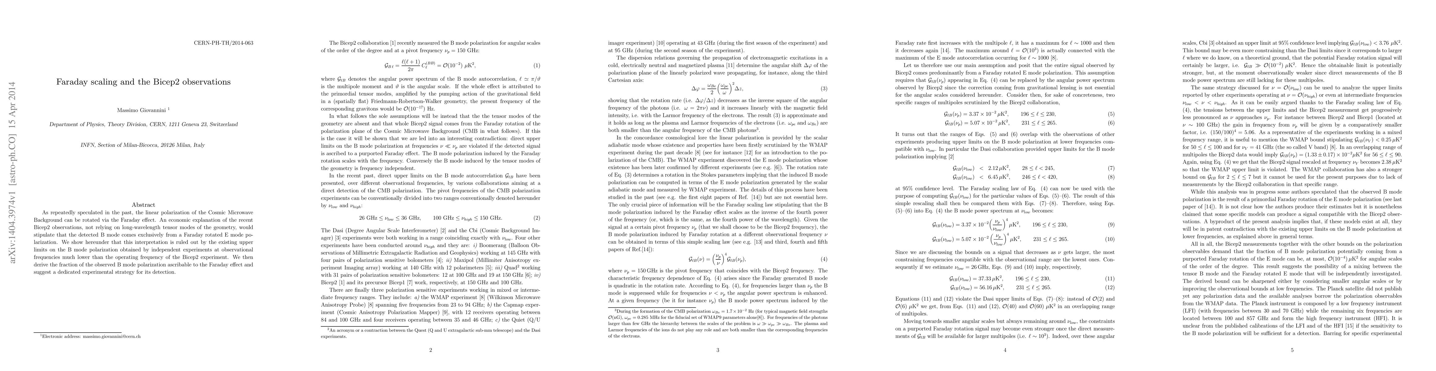 The paper argues that the Faraday effect cannot explain the B-mode polarization observed by Bicep2, as it contradicts existing upper limits on B-mode polarization from lower frequency experiments. It proposes a method for detecting Faraday-rotated E-mode polarization and suggests a dedicated experimental strategy for its observation.