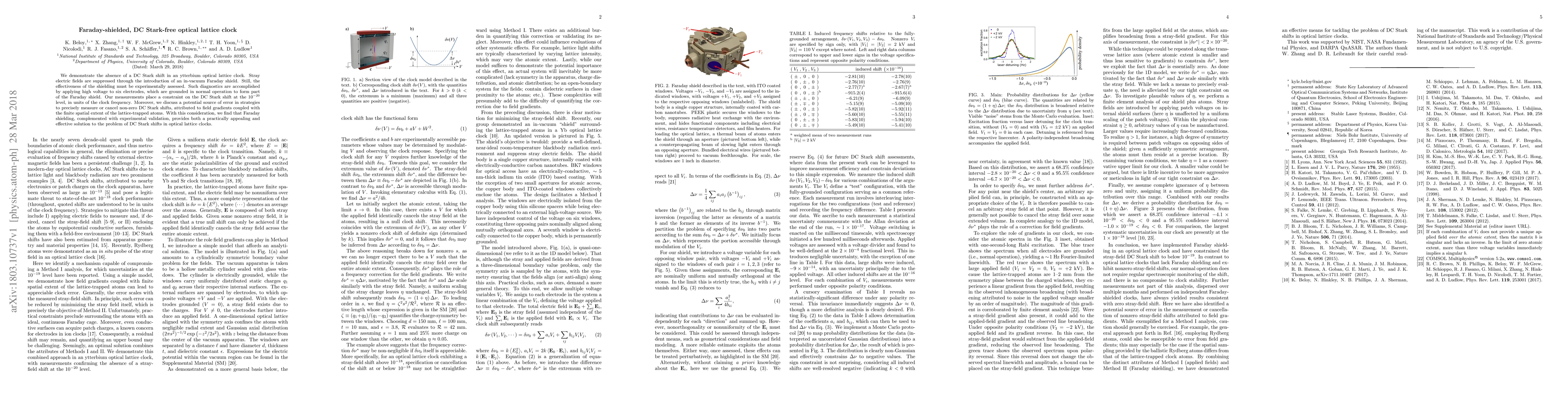This paper demonstrates a Faraday-shielded optical lattice clock that effectively suppresses DC Stark shifts, achieving a constraint on the shift at $10^{-20}$ level. The study also identifies potential errors from field gradients and concludes that Faraday shielding, when validated experimentally, is an effective solution.