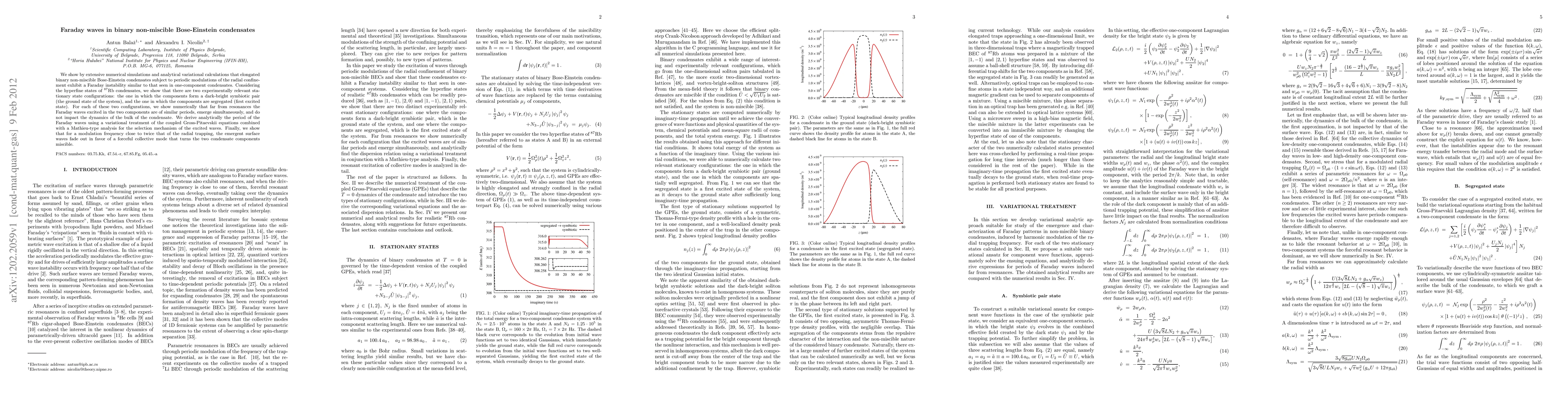 This paper investigates Faraday waves in binary non-miscible Bose-Einstein condensates, revealing similar instabilities to those in one-component condensates. It identifies two stationary states and demonstrates that Faraday waves in both components emerge simultaneously without affecting the bulk dynamics.