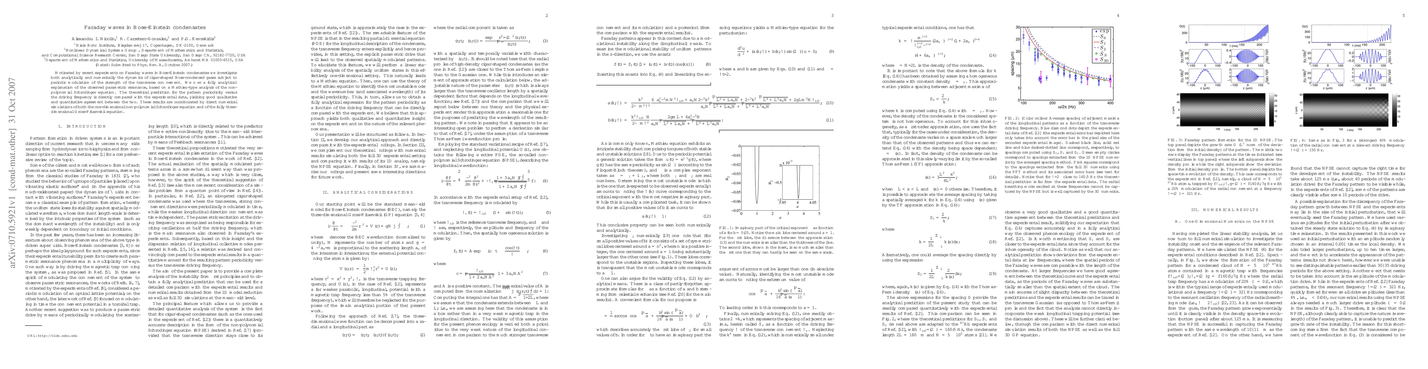 This paper analytically and numerically explores the dynamics of cigar-shaped Bose-Einstein condensates under periodic modulation, explaining the observed Faraday waves through a Mathieu-type analysis of the non-polynomial Schrödinger equation. The theoretical predictions for pattern periodicity versus driving frequency match experimental data and are supported by numerical simulations.