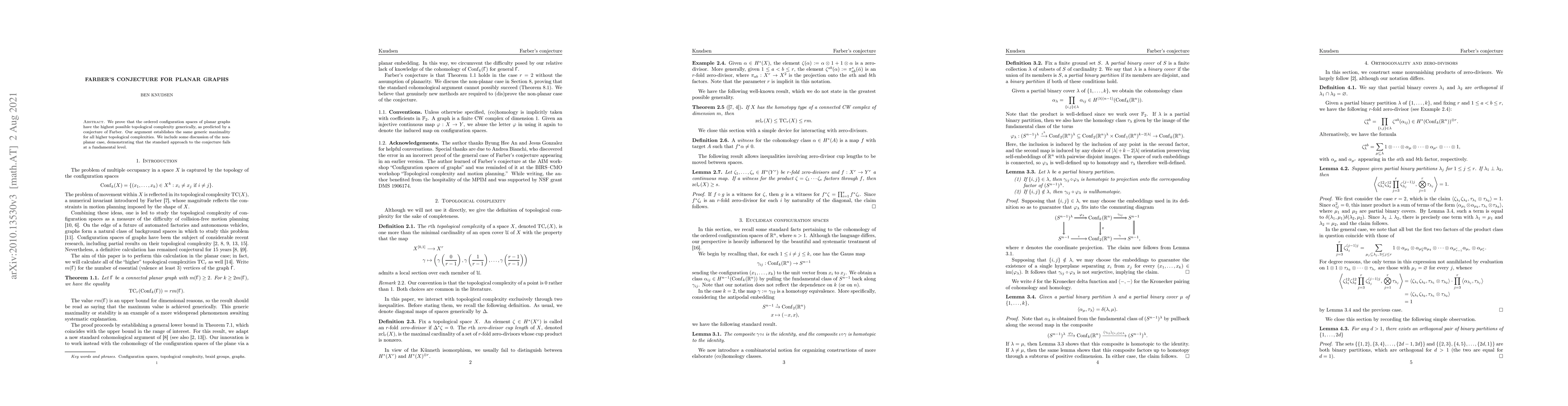 We prove that the ordered configuration spaces of planar graphs have the highest possible topological complexity generically, as predicted by a conjecture of Farber. Our argument establishes the same generic maximality for all higher topological complexities. We include some discussion of the non-planar case, demonstrating that the standard approach to the conjecture fails at a fundamental level.