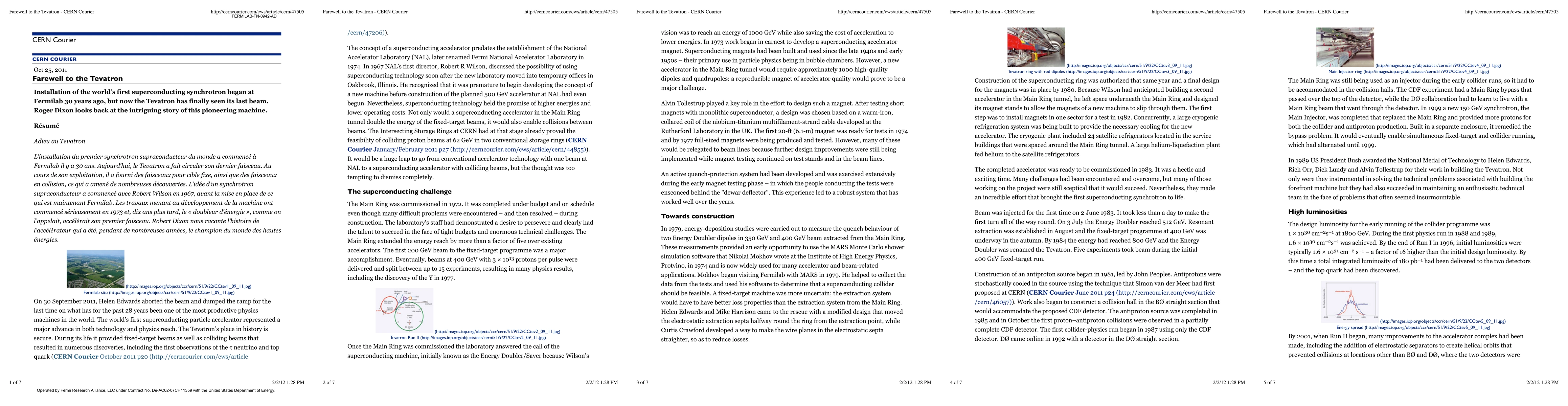 Installation of the world's first superconducting synchrotron began at Fermilab 30 years ago, but now the Tevatron has finally seen its last beam. The author looks back at the intriguing story of this pioneering machine.
