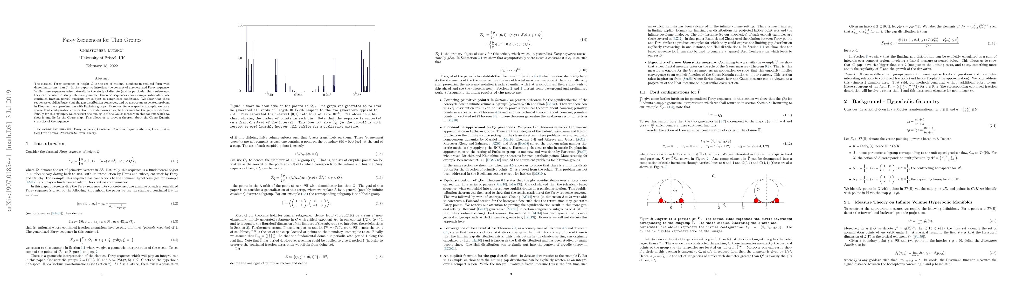 This paper introduces generalized Farey sequences for thin groups, demonstrating their equidistribution and gap distribution convergence. It also addresses a Diophantine approximation problem with Fuchsian groups and proves a theorem about the Gauss-Kuzmin statistics using an ergodic Gauss measure.