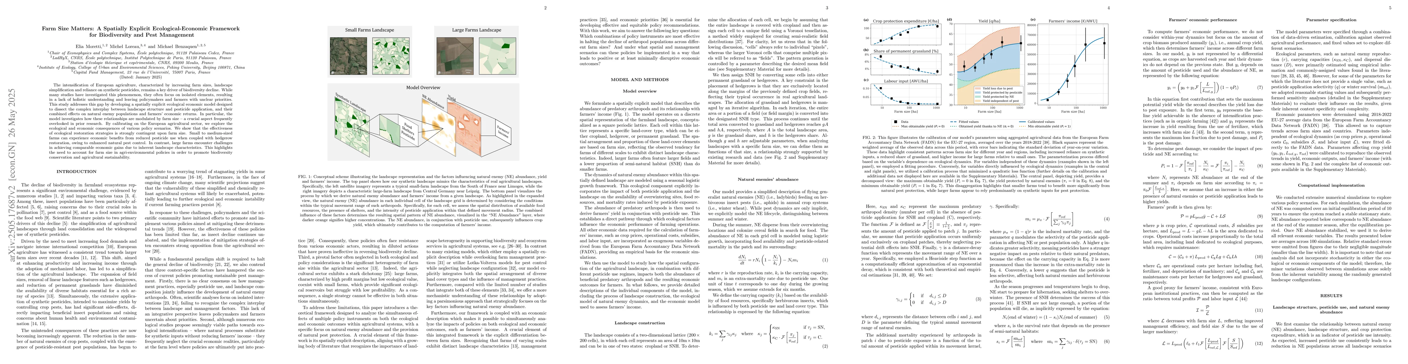 The study develops a spatially explicit ecological-economic model to analyze the interplay between landscape structure, pesticide application, natural enemy populations, and farmers' economic returns, with a focus on farm size.
