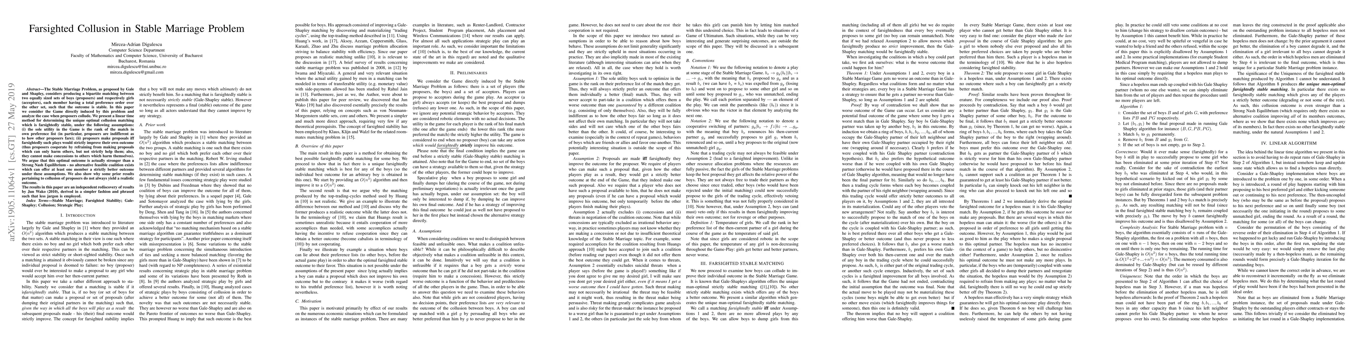 The Stable Marriage Problem, as proposed by Gale and Shapley, considers producing a bipartite matching between two equally sized sets of boys (proposers) and respectively girls (acceptors), each member having a total preference order over the other set, such that the outcome is stable. In this paper we consider the Game directly induced by this problem and analyze the case when proposers collude. We present a linear time method for determining the unique optimal collusion matching which is farsightedly stable, under the following assumptions: (i) the sole utility in the Game is the rank of the match in own preference list (in particular, proposers are indifferent as to how other proposers fare); (ii) proposers make proposals iff farsightedly such plays would strictly improve their own outcome (thus proposers cooperate by refraining from making proposals which can only harm others, but not strictly help them; also, they cannot make concessions to others which harm themselves). We argue that this optimal outcome is actually stronger than a Strong Nash Equilibrium - no alternative feasible coalition exists which can offer at least one member a strictly better outcome under these assumptions.We also show why some prior results pertaining to collusion of proposers do not always yield a realistic outcome. The results in this paper are an independent rediscovery of results by Jun Wako (2010), derived in a simpler fashion and phrased such that less jargon is employed.