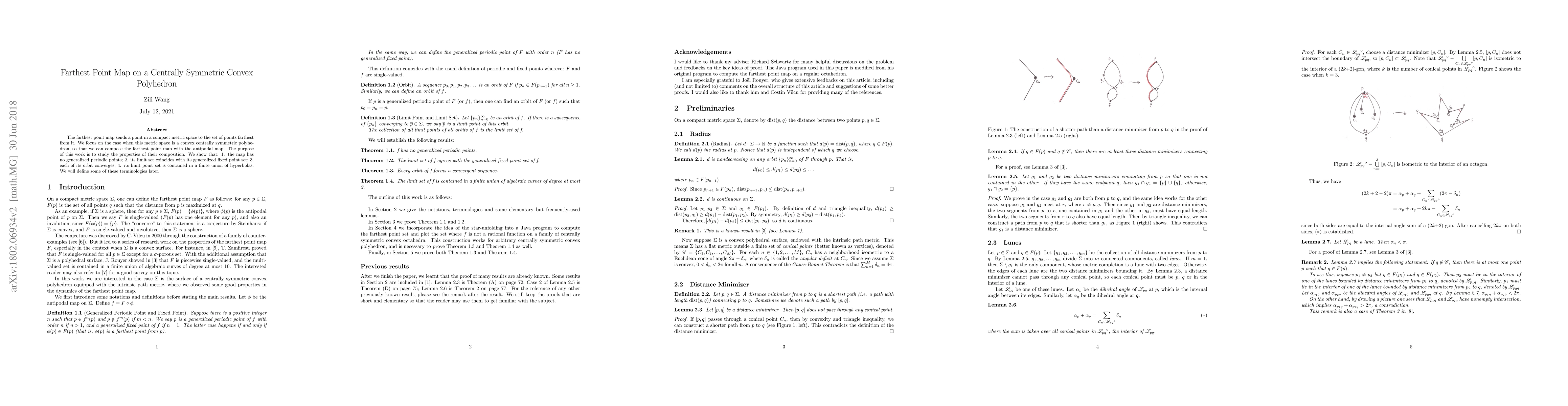 The farthest point map sends a point in a compact metric space to the set of points farthest from it. We focus on the case when this metric space is a convex centrally symmetric polyhedron, so that we can compose the farthest point map with the antipodal map. The purpose of this work is to study the properties of this composition. We show that: 1. the map has no generalized periodic points; 2. its limit point set coincides with its generalized fixed point set; 3. each of its orbit converges; 4. its limit set is contained in a finite union of hyperbolas. We will define some of these terminologies in the article.