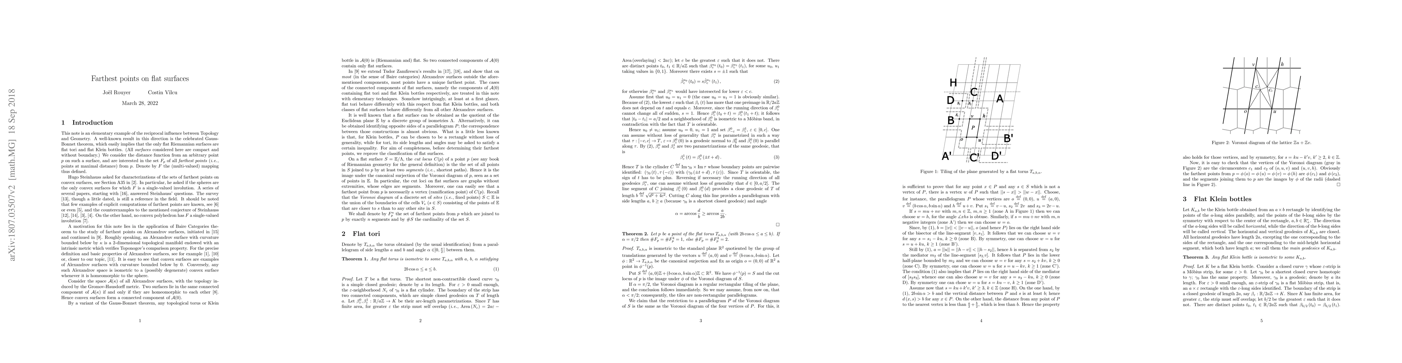 Summary: This paper investigates the distance function from a point $p$ on a flat surface to determine the set $F_{p}$ of all farthest points, identifying the locations that are maximally distant from $p$. The study focuses on the geometric properties and characteristics of these maximal distance points.