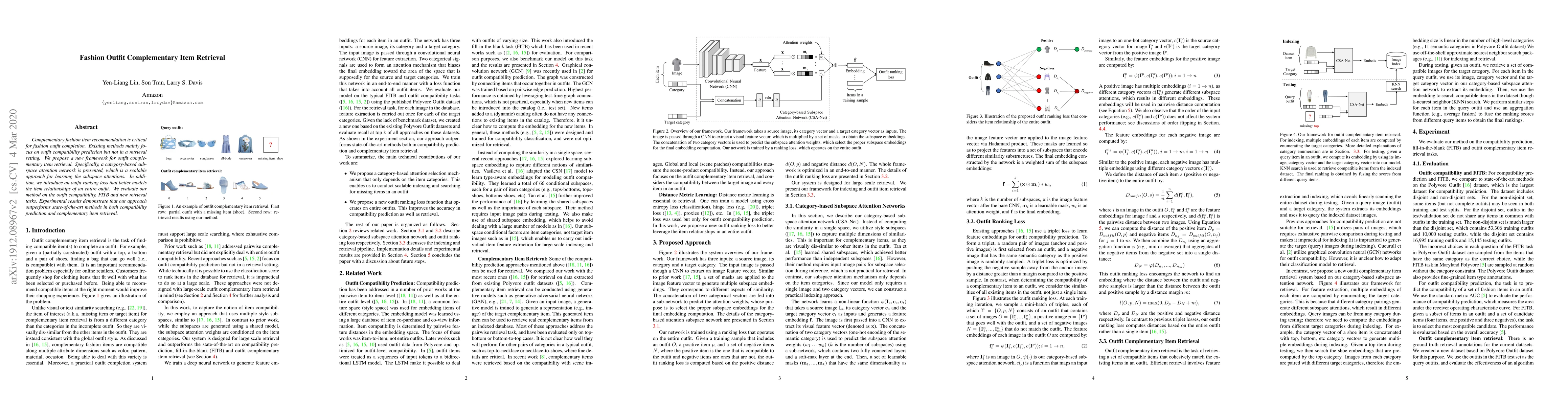 This paper proposes a scalable framework for retrieving complementary fashion items based on category-specific subspace attention and an outfit ranking loss, outperforming existing methods in both outfit compatibility prediction and item retrieval tasks.