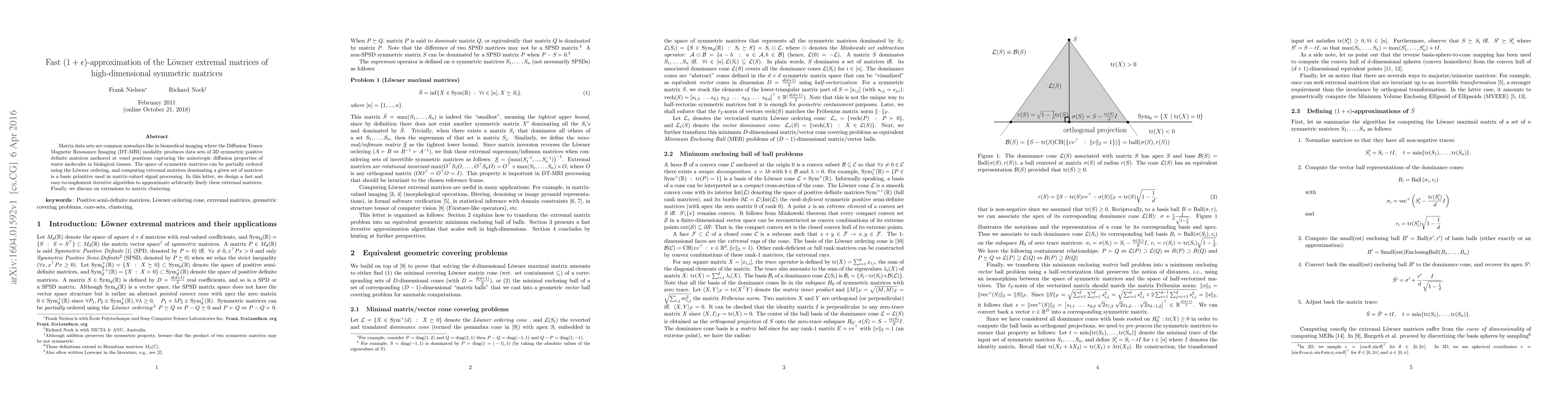 This paper presents a fast iterative algorithm for approximating $(1+\epsilon)$-extremal matrices in the Löwner ordering of high-dimensional symmetric matrices, with applications to biomedical imaging data like DT-MRI. The method is efficient and extends to matrix clustering.