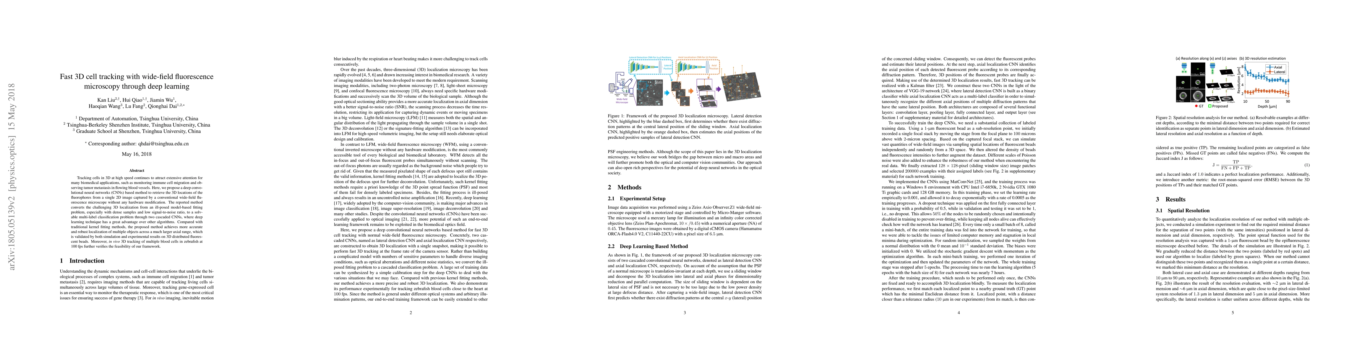 This paper proposes a deep learning method using convolutional neural networks to accurately track 3D cell locations in wide-field fluorescence microscopy, converting the problem into a multi-label classification task for improved accuracy and robustness over traditional methods. The method is validated through simulations and experiments on fluorescent beads and live zebrafish.