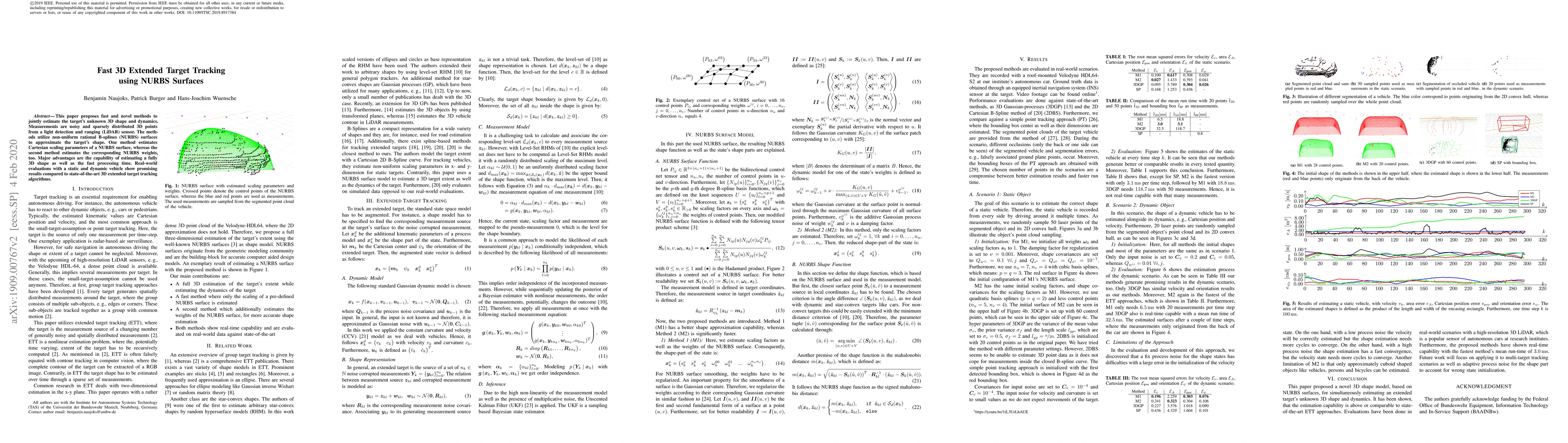This paper proposes fast and novel methods to jointly estimate the target's unknown 3D shape and dynamics. Measurements are noisy and sparsely distributed 3D points from a light detection and ranging (LiDAR) sensor. The methods utilize non-uniform rational B-splines (NURBS) surfaces to approximate the target's shape. One method estimates Cartesian scaling parameters of a NURBS surface, whereas the second method estimates the corresponding NURBS weights, too. Major advantages are the capability of estimating a fully 3D shape as well as the fast processing time. Real-world evaluations with a static and dynamic vehicle show promising results compared to state-of-the-art 3D extended target tracking algorithms.