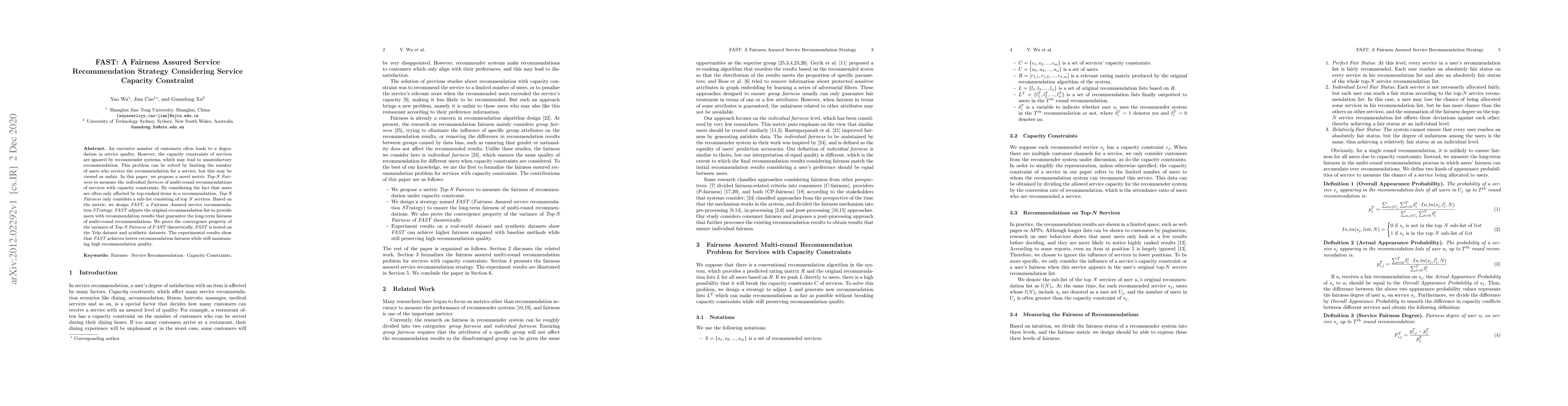 This paper proposes FAST, a Fairness Assured Service Recommendation Strategy, which addresses the issue of service capacity constraints in recommendation systems. FAST introduces a Top-N Fairness metric to ensure long-term fairness in multi-round recommendations, balancing service quality with user fairness.