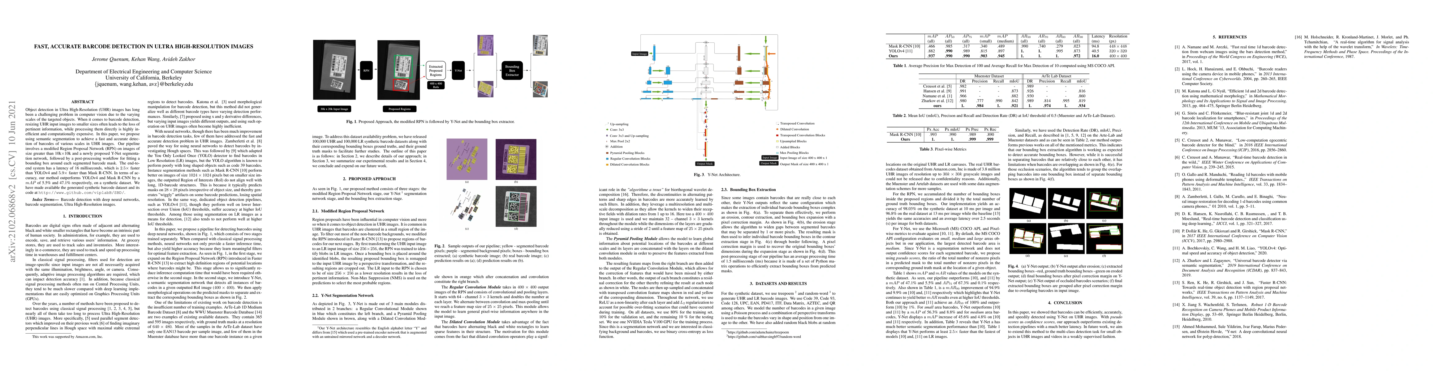 Researchers propose a fast and accurate method for detecting barcodes in ultra-high-resolution images using semantic segmentation, achieving a latency of 16ms and outperforming existing methods with mAP improvements of 5.5% and 47.1%.