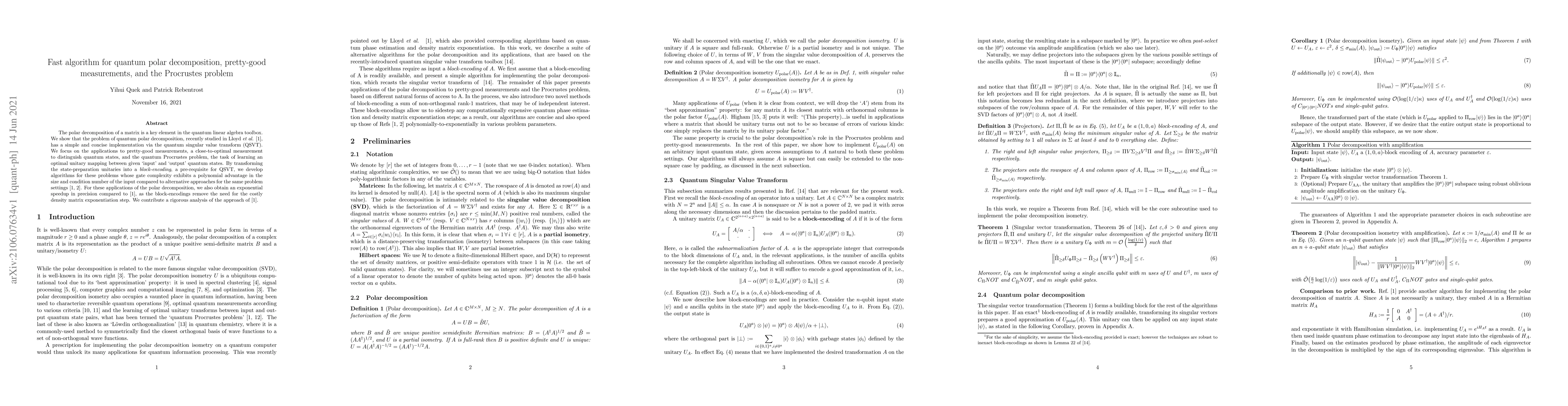This paper presents a fast quantum algorithm for polar decomposition using the quantum singular value transform (QSVT), achieving polynomial gate complexity advantages and exponential precision improvements over previous methods. It applies this approach to pretty-good measurements and the quantum Procrustes problem, demonstrating significant efficiency gains.