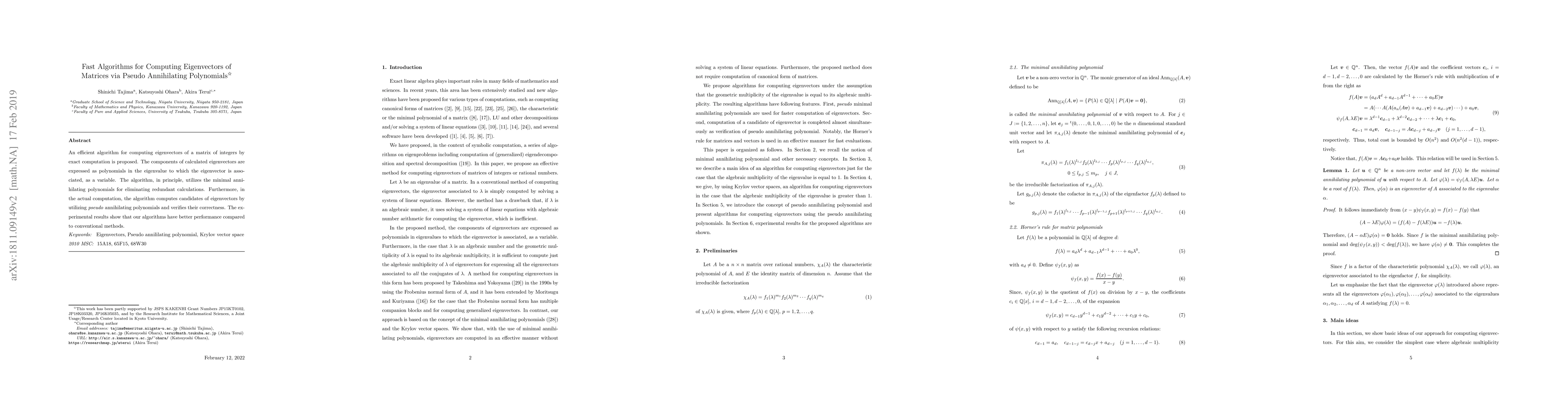 A new algorithm is proposed to efficiently compute eigenvectors of matrices using pseudo annihilating polynomials, offering improved performance over traditional methods.