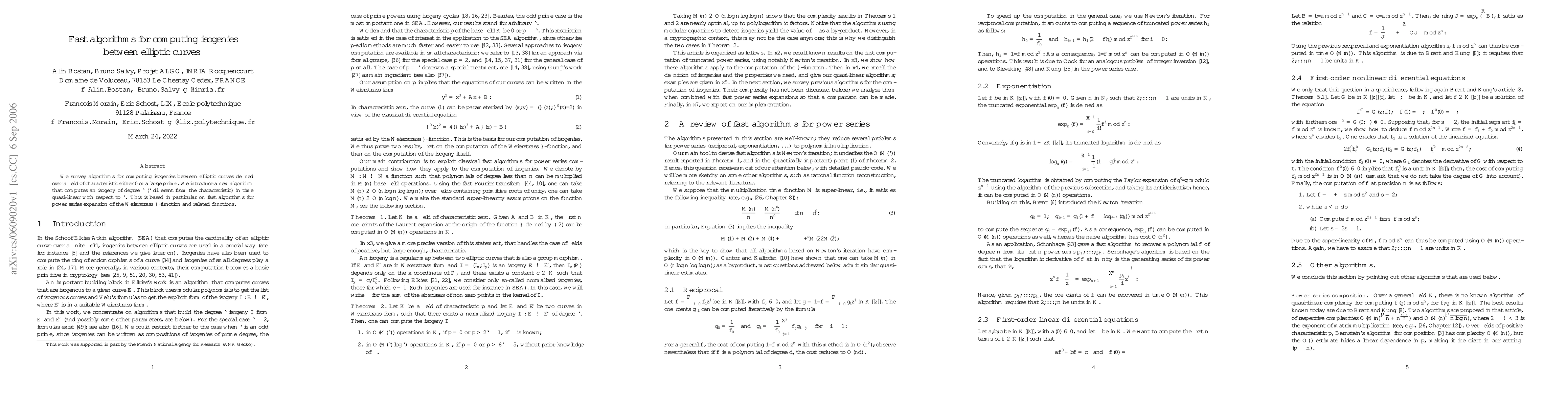 This paper surveys algorithms for computing isogenies between elliptic curves and introduces a new quasi-linear time algorithm for computing degree $\ell$ isogenies, leveraging fast power series expansion techniques for the Weierstrass $\wp$-function.