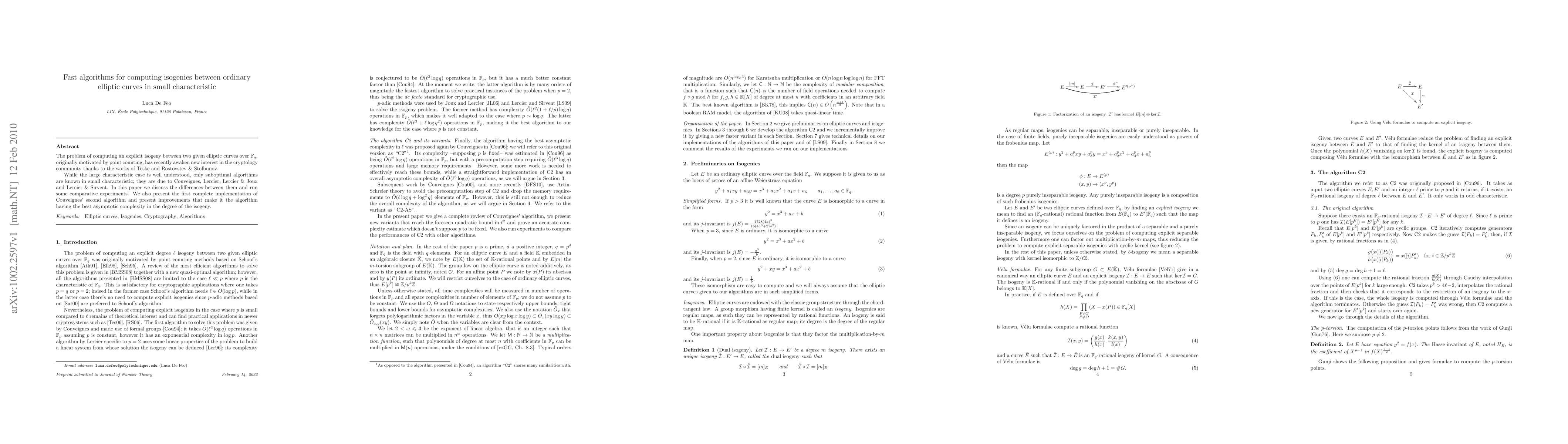 This paper discusses efficient algorithms for computing isogenies between ordinary elliptic curves over finite fields with small characteristic. It presents improvements to Couveignes' second algorithm, achieving the best asymptotic complexity for the degree of the isogeny, and compares it with other known suboptimal methods.