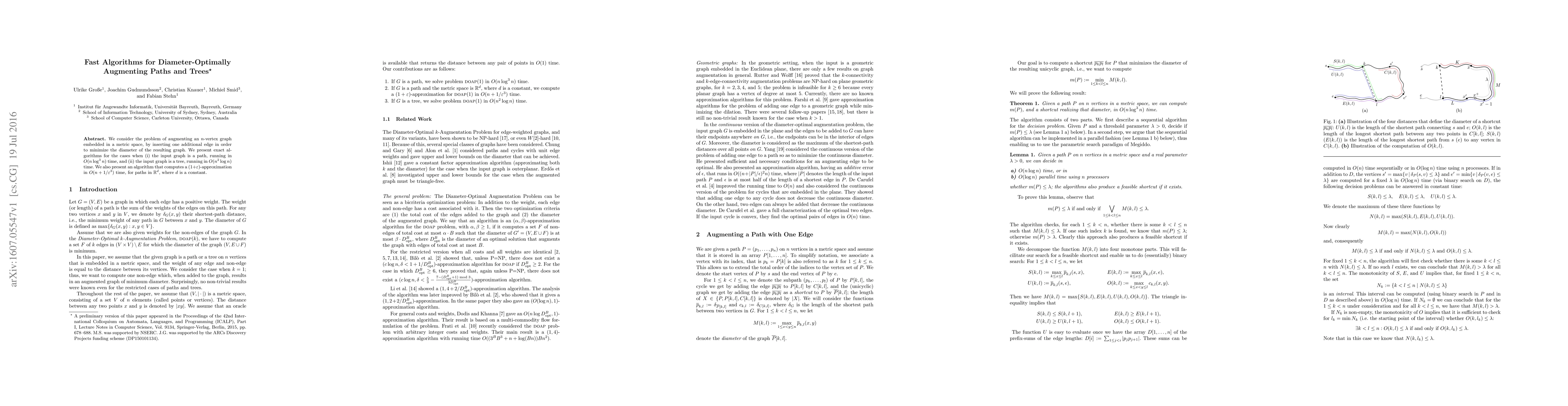 This paper presents efficient algorithms for minimizing the diameter of graphs by adding a single edge: O(n log^3 n) for paths and O(n^2 log n) for trees, and a (1+ε)-approximation algorithm in O(n + 1/ε^3) time for paths in constant-dimensional space.
