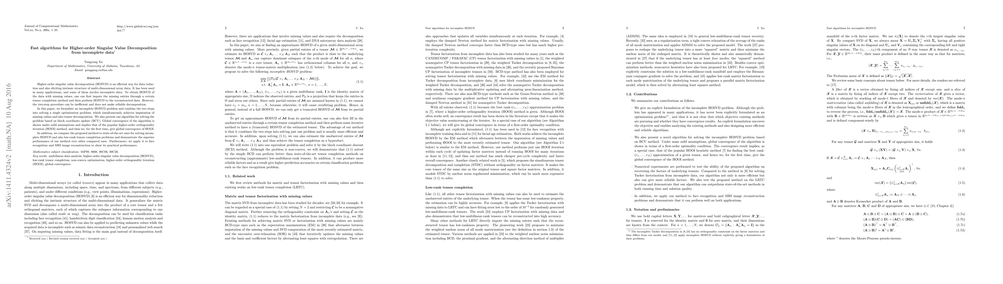 Researchers developed a single optimization algorithm to solve Higher-order Singular Value Decomposition with missing data, outperforming existing methods in face recognition and MRI image reconstruction applications.