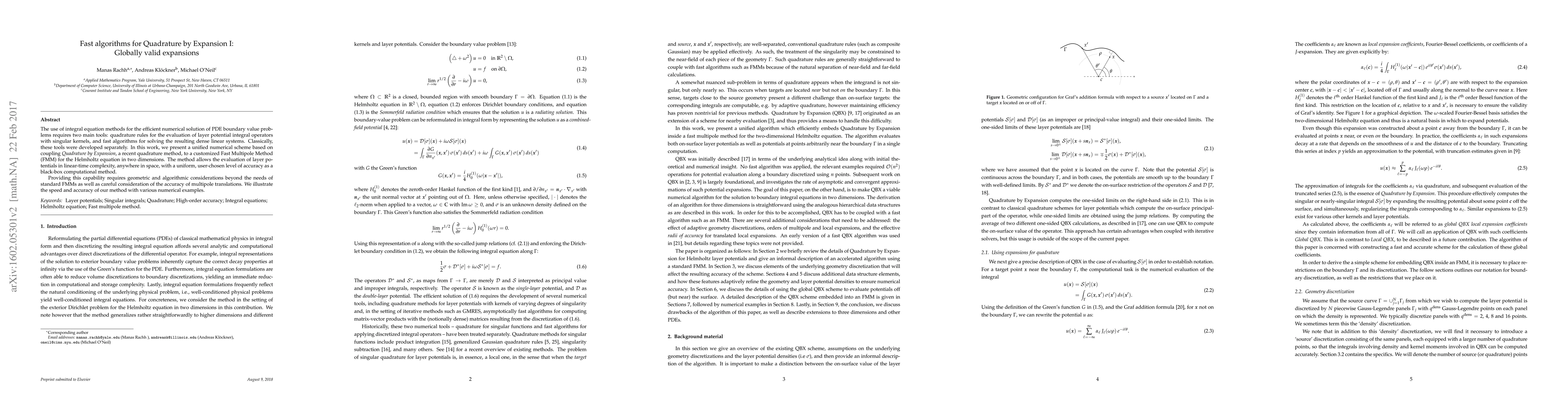 This paper presents a unified numerical scheme combining Quadrature by Expansion with a customized Fast Multipole Method for solving PDE boundary value problems efficiently. The method achieves linear-time evaluation of layer potentials with high accuracy, suitable for a range of applications involving integral equations and the Helmholtz equation.