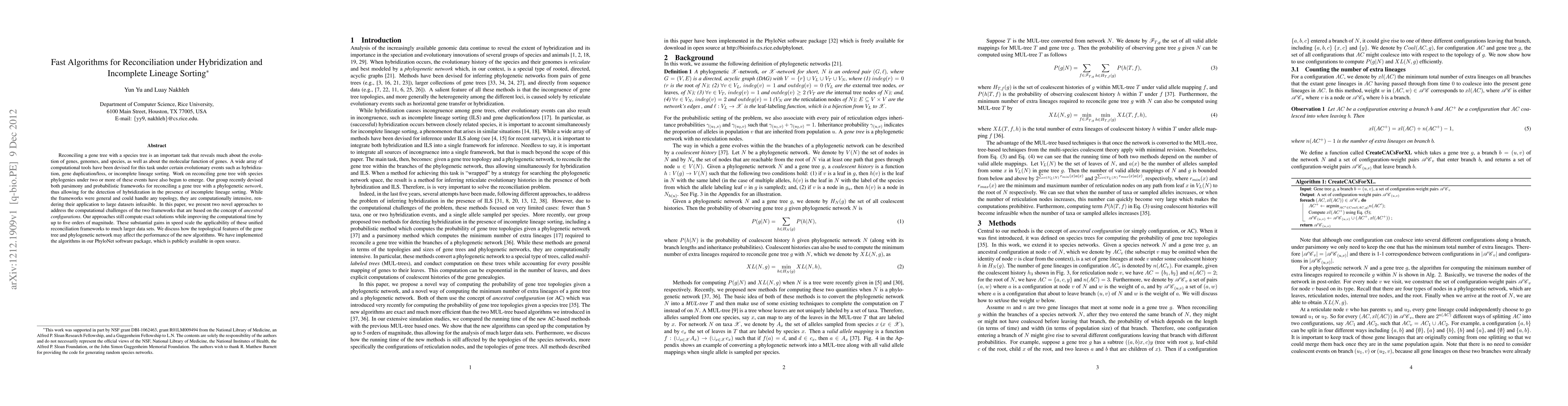 This paper introduces fast algorithms to reconcile gene trees with species trees under hybridization and incomplete lineage sorting, significantly improving computational efficiency by up to five orders of magnitude. The new approaches, implemented in the open-source PhyloNet software, allow for the analysis of larger datasets while maintaining exact solutions.