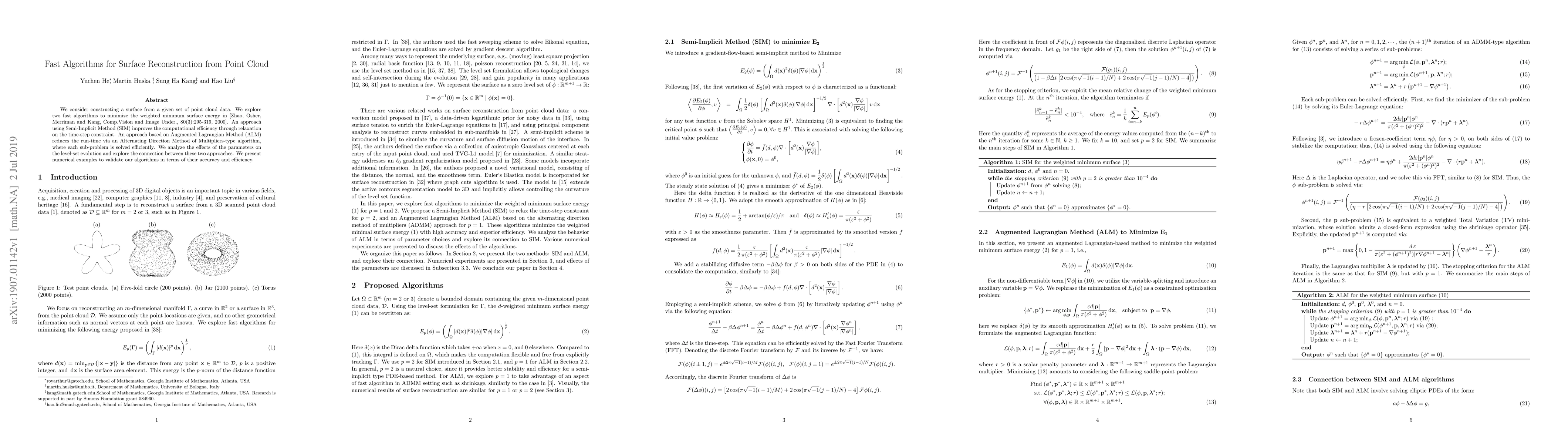 We consider constructing a surface from a given set of point cloud data. We explore two fast algorithms to minimize the weighted minimum surface energy in [Zhao, Osher, Merriman and Kang, Comp.Vision and Image Under., 80(3):295-319, 2000]. An approach using Semi-Implicit Method (SIM) improves the computational efficiency through relaxation on the time-step constraint. An approach based on Augmented Lagrangian Method (ALM) reduces the run-time via an Alternating Direction Method of Multipliers-type algorithm, where each sub-problem is solved efficiently. We analyze the effects of the parameters on the level-set evolution and explore the connection between these two approaches. We present numerical examples to validate our algorithms in terms of their accuracy and efficiency.