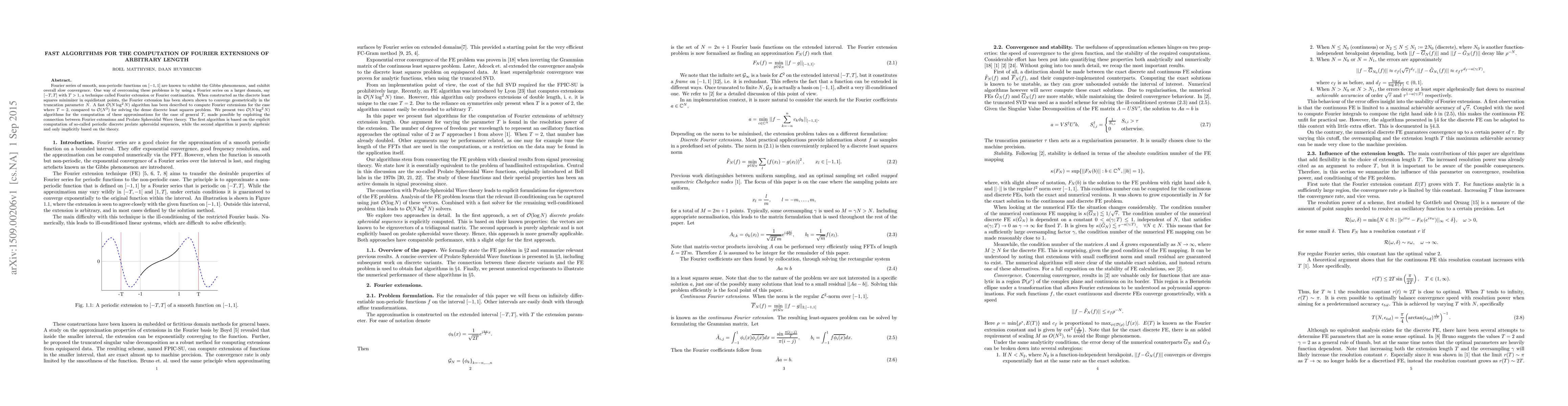 Two new algorithms with a fast O(N π N) complexity have been developed to compute Fourier extensions for non-periodic functions on larger domains, overcoming slow convergence issues.