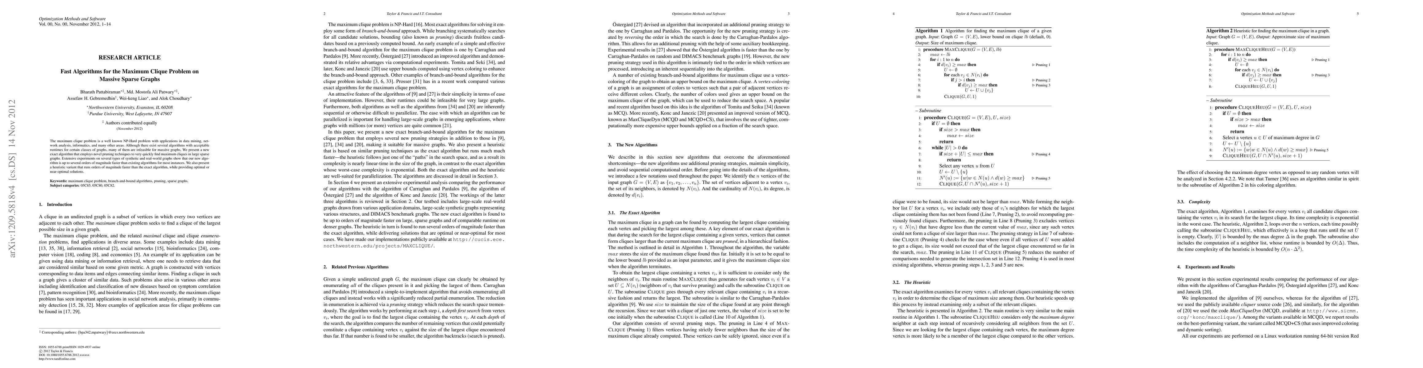 This paper introduces a new exact algorithm for finding maximum cliques in massive sparse graphs, utilizing advanced pruning techniques for significant speed improvements. The exact algorithm outperforms existing methods by several orders of magnitude, and a heuristic variant provides even faster, near-optimal solutions.