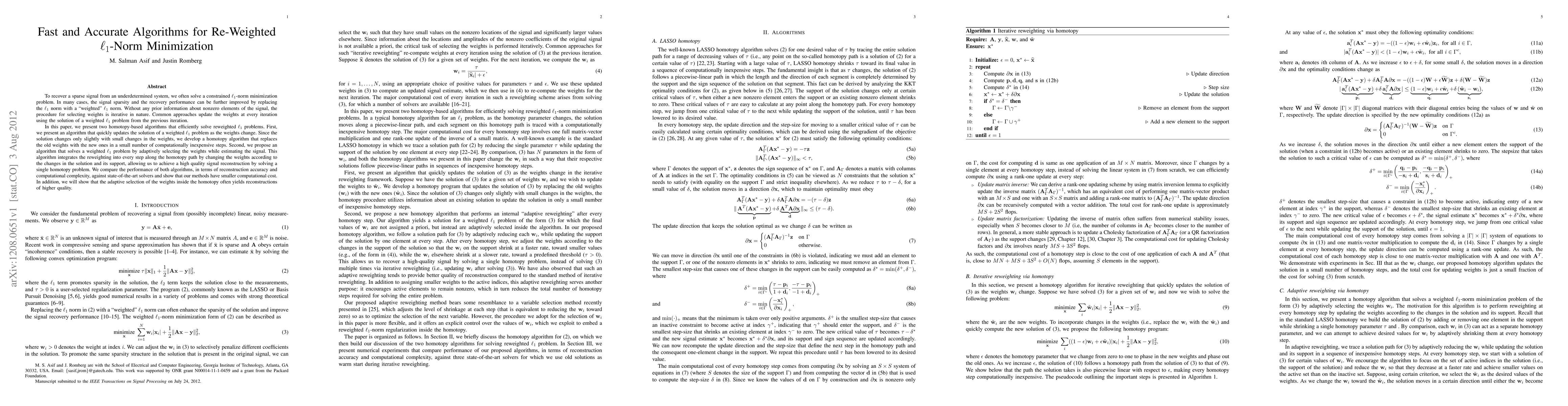 This paper presents two homotopy-based algorithms for efficiently solving reweighted L1 problems, improving signal reconstruction accuracy and reducing computational complexity compared to state-of-the-art solvers.