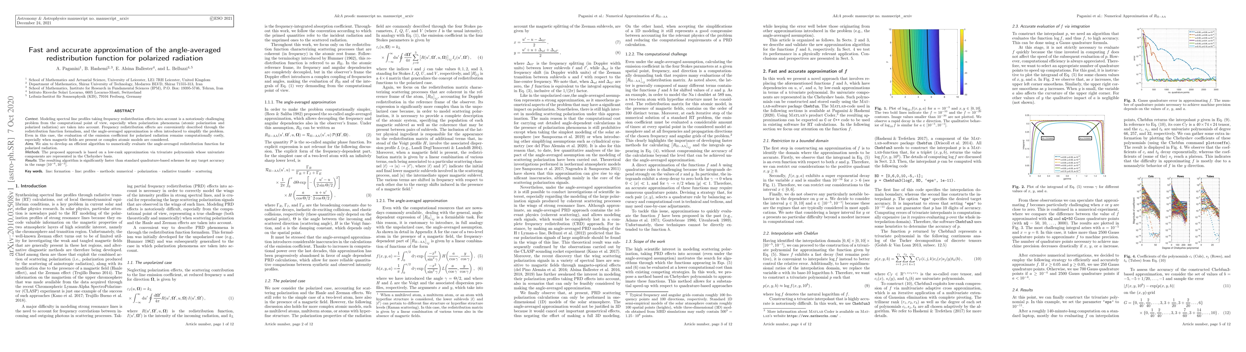 This paper proposes an efficient algorithm for evaluating the angle-averaged redistribution function for polarized radiation, addressing the computational challenge of modeling spectral line profiles. The method uses low-rank approximation via trivariate polynomials in the Chebyshev basis, significantly outperforming standard quadrature-based methods in speed for a range of accuracies.