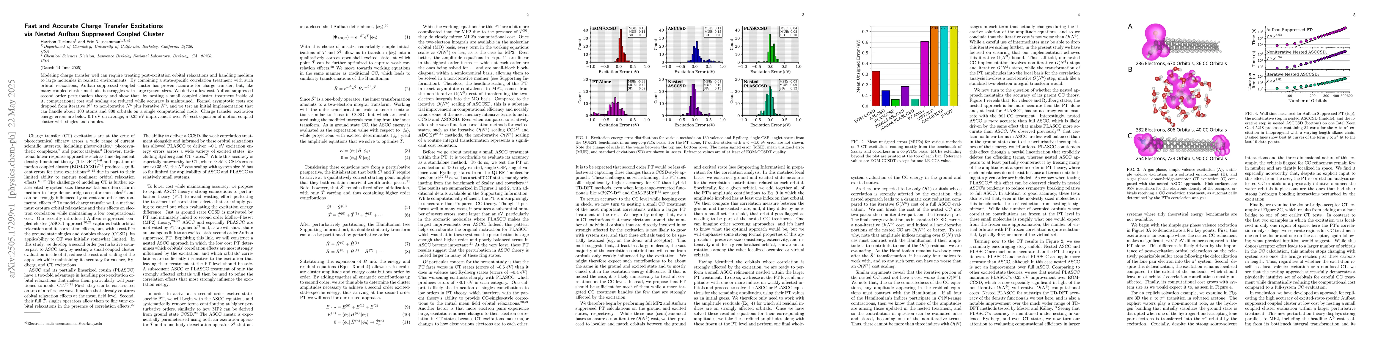 Researchers developed a new method to accurately model charge transfer excitations in large molecules, reducing computational cost while maintaining accuracy. The new approach achieves significant improvements over existing methods, enabling simulations of up to 100 atoms and 800 orbitals on a single node.