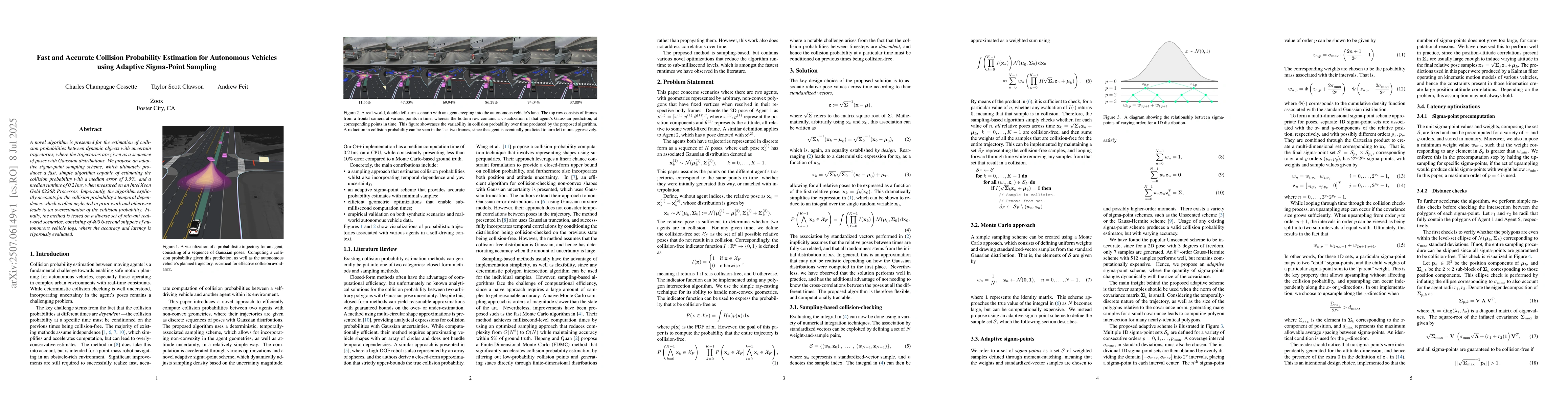 A novel algorithm is presented for the estimation of collision probabilities between dynamic objects with uncertain trajectories, where the trajectories are given as a sequence of poses with Gaussian distributions. We propose an adaptive sigma-point sampling scheme, which ultimately produces a fast, simple algorithm capable of estimating the collision probability with a median error of 3.5%, and a median runtime of 0.21ms, when measured on an Intel Xeon Gold 6226R Processor. Importantly, the algorithm explicitly accounts for the collision probability's temporal dependence, which is often neglected in prior work and otherwise leads to an overestimation of the collision probability. Finally, the method is tested on a diverse set of relevant real-world scenarios, consisting of 400 6-second snippets of autonomous vehicle logs, where the accuracy and latency is rigorously evaluated.