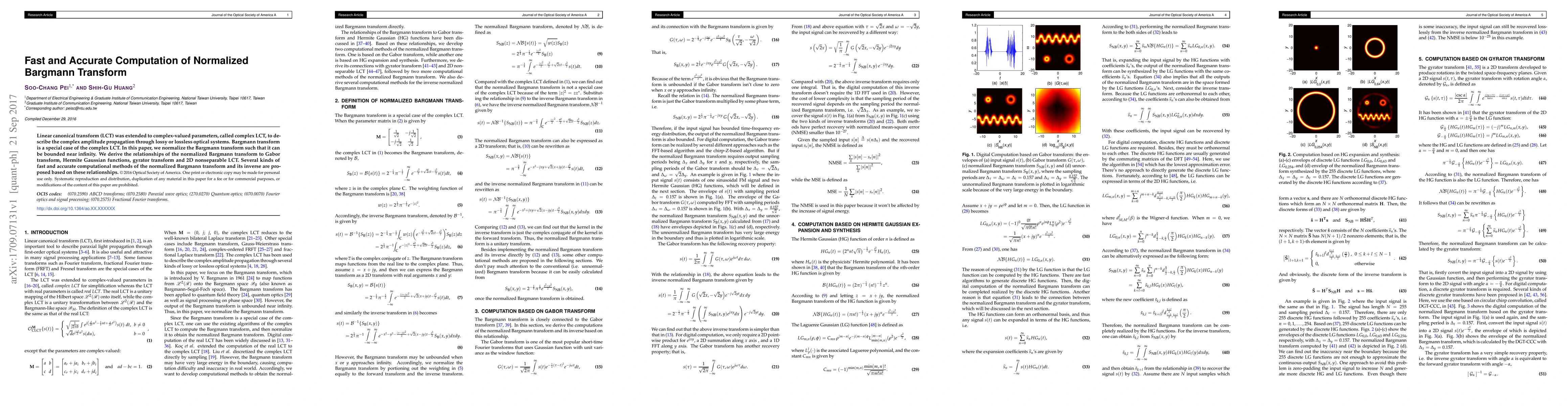 This paper proposes fast and accurate computational methods for a normalized Bargmann transform, which is useful for describing complex amplitude propagation in optical systems.