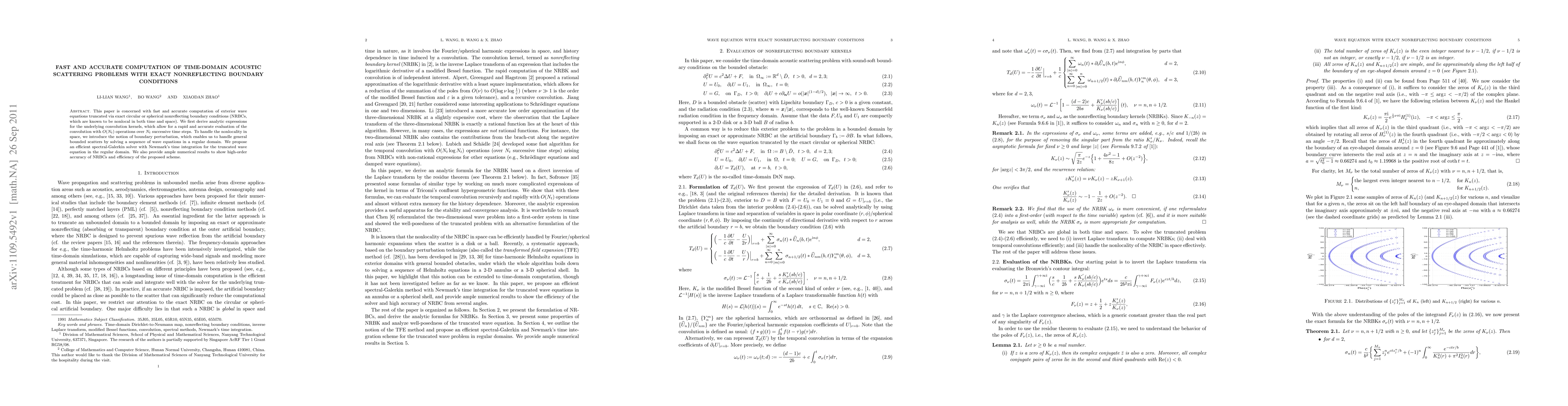 This paper presents a fast and accurate method for solving time-domain acoustic scattering problems using exact nonreflecting boundary conditions (NRBCs). It employs analytic convolution kernels and a spectral-Galerkin solver with Newmark's time integration to achieve high-order accuracy and efficiency.