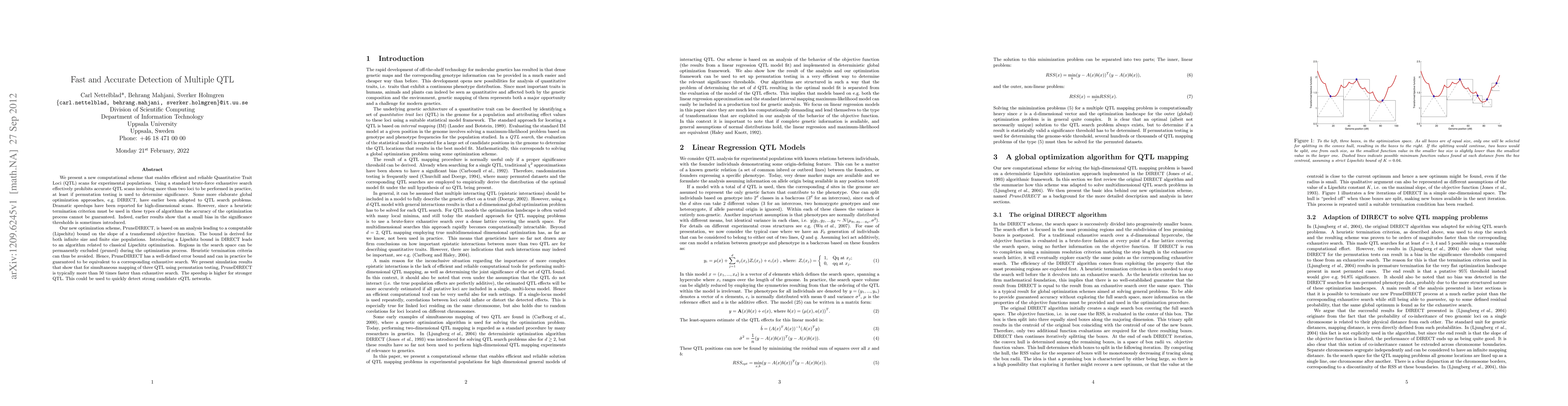 This paper introduces PruneDIRECT, a novel optimization scheme for Quantitative Trait Loci (QTL) scans, offering significant speed improvements without compromising accuracy. It guarantees equivalence to exhaustive search, proving to be over 50 times faster than exhaustive search for detecting three QTL simultaneously.