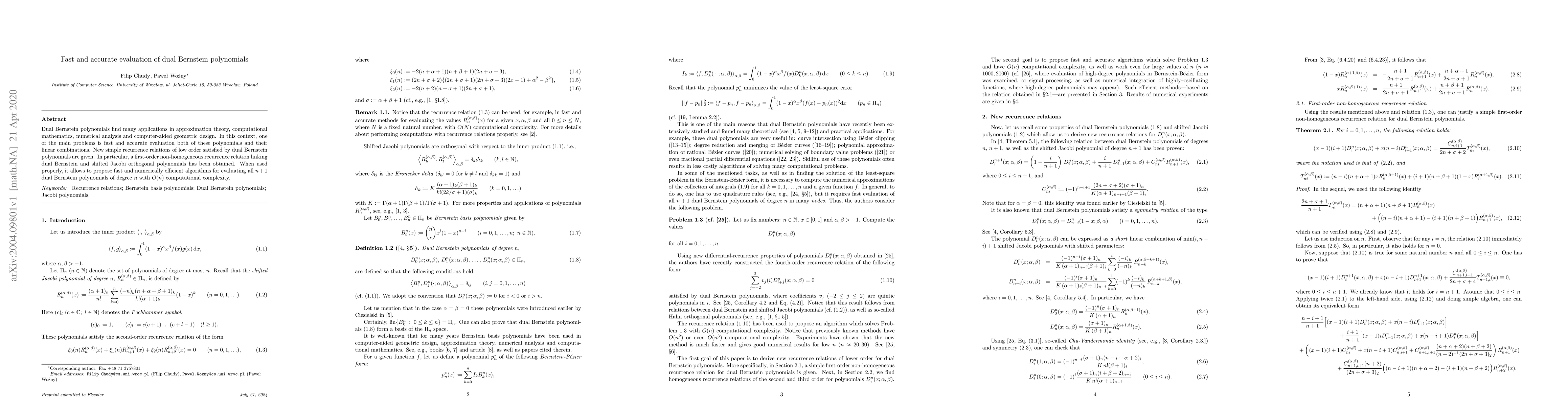 Dual Bernstein polynomials find many applications in approximation theory, computational mathematics, numerical analysis and computer-aided geometric design. In this context, one of the main problems is fast and accurate evaluation both of these polynomials and their linear combinations. New simple recurrence relations of low order satisfied by dual Bernstein polynomials are given. In particular, a first-order non-homogeneous recurrence relation linking dual Bernstein and shifted Jacobi orthogonal polynomials has been obtained. When used properly, it allows to propose fast and numerically efficient algorithms for evaluating all $n+1$ dual Bernstein polynomials of degree $n$ with $O(n)$ computational complexity.