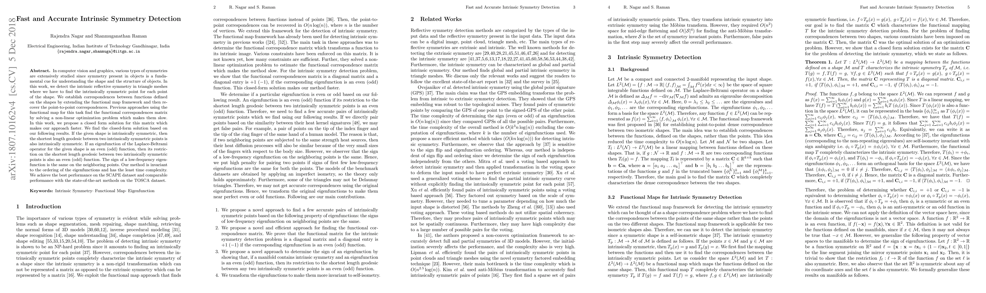 In computer vision and graphics, various types of symmetries are extensively studied since symmetry present in objects is a fundamental cue for understanding the shape and the structure of objects. In this work, we detect the intrinsic reflective symmetry in triangle meshes where we have to find the intrinsically symmetric point for each point of the shape. We establish correspondences between functions defined on the shapes by extending the functional map framework and then recover the point-to-point correspondences. Previous approaches using the functional map for this task find the functional correspondences matrix by solving a non-linear optimization problem which makes them slow. In this work, we propose a closed form solution for this matrix which makes our approach faster. We find the closed-form solution based on our following results. If the given shape is intrinsically symmetric, then the shortest length geodesic between two intrinsically symmetric points is also intrinsically symmetric. If an eigenfunction of the Laplace-Beltrami operator for the given shape is an even (odd) function, then its restriction on the shortest length geodesic between two intrinsically symmetric points is also an even (odd) function. The sign of a low-frequency eigenfunction is the same on the neighboring points. Our method is invariant to the ordering of the eigenfunctions and has the least time complexity. We achieve the best performance on the SCAPE dataset and comparable performance with the state-of-the-art methods on the TOSCA dataset.
