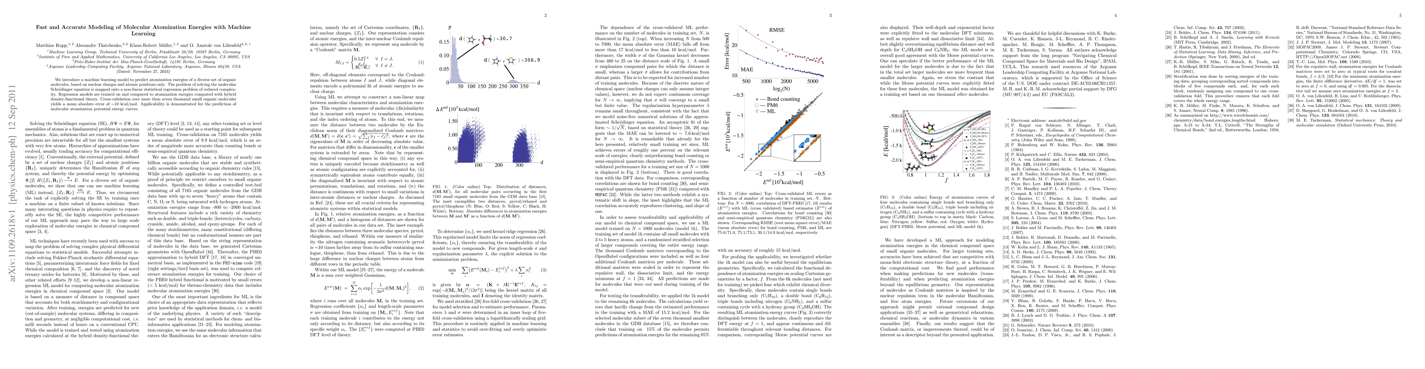 This paper presents a machine learning model that accurately predicts atomization energies of organic molecules using nuclear charges and atomic positions, achieving a mean absolute error of ~10 kcal/mol. The model is trained and validated against hybrid density-functional theory calculations on over seven thousand molecules.