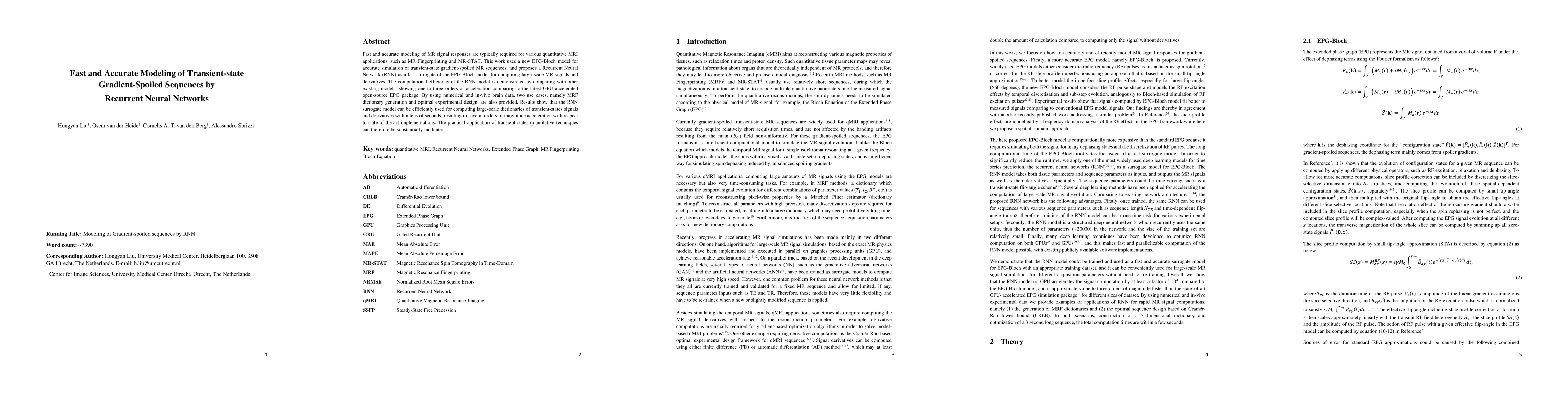 A new Recurrent Neural Network model accelerates accurate modeling of MR signal responses in MRI applications, achieving 1-3 orders of speed increase over existing models.
