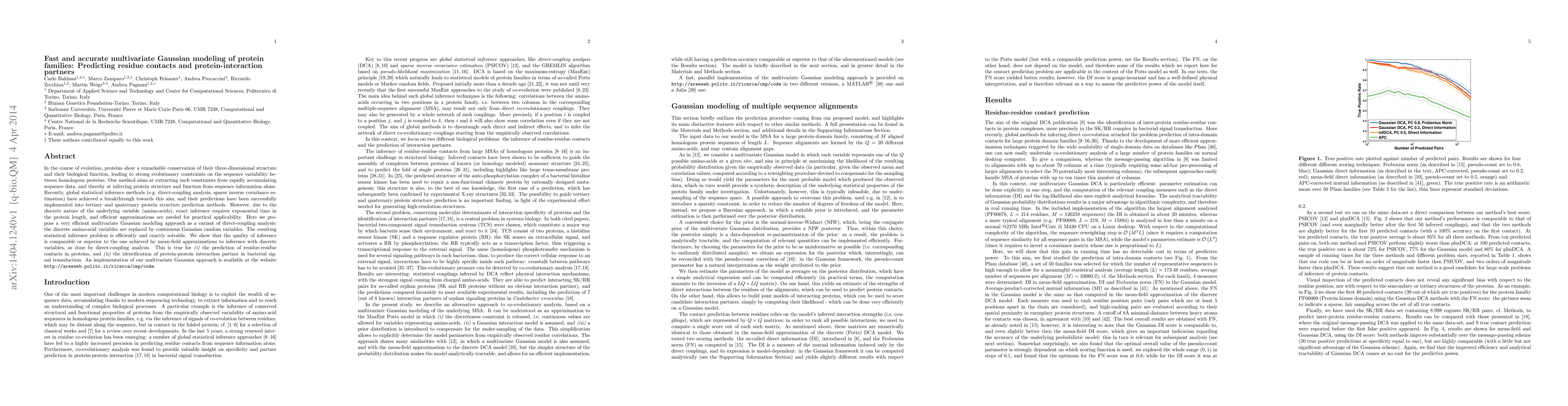 This paper proposes a multivariate Gaussian modeling approach to efficiently infer evolutionary constraints from protein sequence data, enabling accurate predictions of residue contacts and protein-interaction partners. The method replaces discrete amino acids with continuous Gaussian variables, offering an exact and efficient solution compared to traditional approximations.